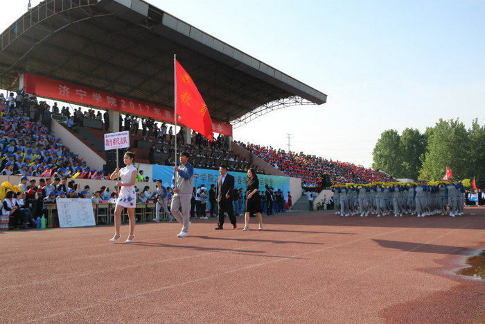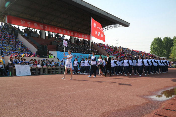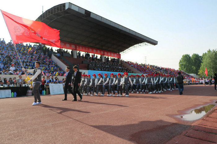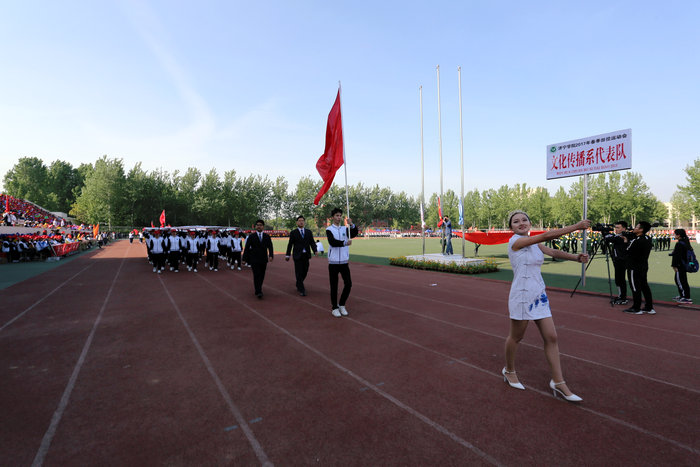 品文化底蕴,我们步履坚定;沐圣地儒风,我们满怀希望;聚俊彦之长,我们团结奋进。4月26日上午7:50,在雄壮庄严的中华人民共和国国歌声中,全校师生热切期待的学校2017年春季田径运动会在东操场隆重开幕。校党委成员、大会组委会成员在主席台就座。党委委员、副院长、校体委主任朱松涛致开幕辞。开幕式由校党委(院长)办公室主任、校体委副主任李凡路主持。