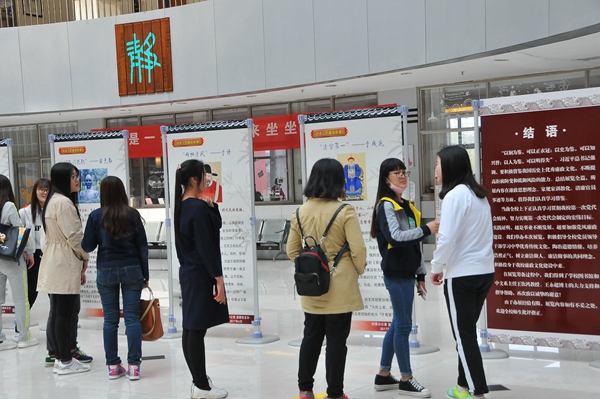 本次展览以“廉者仁心”为主题,分“习近平‘引经据典’谈廉政、传统文化中的家规、历史上的廉政故事”三个单元。展出内容中,习近平总书记关于党风廉政建设和反腐败斗争的重要讲话中所引用的格言警句,生动传神,寓意深邃;山东孔氏家族、浙江郑义门等古代名门望族的家规家训,延续和弘扬了中华民族的“家国”文化,是治家教子、修身处世的智慧结晶;“‘四知却金’的杨震”“‘清官第一’的于成龙”等古代清官廉吏的廉政故事,颂扬了他们勤政爱民的追求、清正廉洁的官德、百折不回的作风和造福百姓的主旨,值得后人谛悟其神,秉承遗风。参展中,学校领导不时停下脚步仔细观看,认真听取工作人员讲解,并详细询问有关情况。整个展览图文并茂,设计精美,引起了参展人员浓厚兴趣,吸引了大家驻足观看,使大家感受到了心灵的洗涤和精神的升华。
