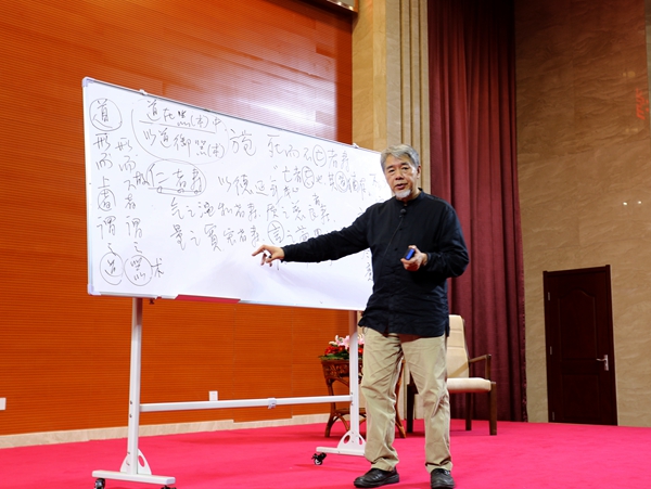 报告会上,王守常教授围绕学习贯彻习近平总书记弘扬优秀传统文化重要讲话精神,从“中国”二字的解读、中国智慧强调“一分为三”、把我们的文化价值观宣扬出去、读经典不可断章取义、“和”强调多元化和多样性等方面就如何认识中国文化传统,如何认识儒学在中国文化中的主流地位,如何把握中国文化的特征及中国哲学等方面的问题,进行了深入独到的讲解。他首先对2013年11月26日习近平总书记到曲阜视察的重大意义进行了解读,他认为习近平“曲阜讲话”与邓小平“南巡讲话”具有同等重要的意义。“曲阜讲话”解决了人文社科领域的“姓孔”和“姓马”的对立问题,实际上提出了马克思主义与儒学的关系问题。他强调,中共中央办公厅、国务院办公厅印发的《关于实施中华优秀传统文化传承发展工程的意见》,第一次以中央文件的专题形式,将传承发展中华优秀传统文化提升到国家重大战略任务的高度,并做出全面系统的规划和部署,这是我国文化建设征途中具有里程碑意义的一件大事。他指出,要珍惜、尊重、传承、弘扬中华优秀传统文化。除了中国制造、中国加工,应该还有一个中国智慧。“中国”最早的概念就是“中央之国”。何为“华夏”?从史料看,这两个字在西周初期就在使用。华夏的概念在文献里的解释是“有章服之美谓之华,有礼仪之大谓之夏”,“华”的意思是华美、华丽,是一种文化的表示。在分享“一分为三”的中国智慧时,他强调,智慧是一种思维方式,一分为二的思维方法会变成两元对立的思考。中华文化具有一分为三的思维智慧。一分为三的“三”,是多的意思,是从第三个角度思考问题。中庸是最高的道德,是比仁义礼智信还高的道德,同时也是思考问题的方法。他强调,中国承继着数千年的文化传统,中国要成为世界上的负责任大国,当前,我们应该把我们的文化价值观宣扬出去。他指出,国学在今天有所发展也是一个必然的趋势,传承优秀传统文化、诵读国学经典不可断章取义,要还原适当的语境来读古文和传统经典,否则就会失之毫厘谬以千里。中国智慧还体现在中国文化的“和而不同”上,这个“和”强调的是多元性、多样性,不是抹杀差异性,“和实生物,同则不继”。中国文化的源远流长根植于其海纳百川的包容性。中华文化具有独一无二的理念、智慧、气度、神韵,要不断增强中华优秀传统文化的生命力和影响力,创造中华文化新辉煌。