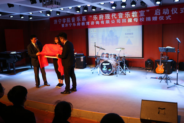 4月20日上午,音乐系“乐府现代音乐教室”启动仪式暨济宁乐府教育咨询有限公司回报母校捐赠仪式在系音乐厅举行。校党委副书记马恩出席仪式,音乐系主任葛修路、党委(院长)办公室主任李凡路、济宁乐府教育咨询有限公司领导及音乐系教师参加活动。