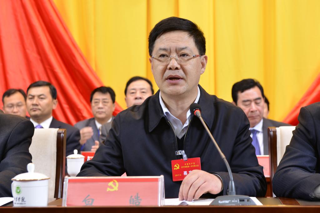 白皓在开幕式上讲话,代表省委组织部、省委高校工委和省教育厅党组,对大会的召开表示热烈的祝贺,向为学校改革发展付出辛勤劳动、作出积极贡献的共产党员和全校师生致以崇高的敬意和亲切的慰问。白皓高度评价了我校六十多年来特别是近几年来,在省委的正确领导下,坚持社会主义办学方向,紧紧围绕立德树人根本任务,坚持“应用型、地方性、开放式、国际化”办学定位,积极推进创新发展、转型发展、内涵发展、特色发展,人才培养质量和服务经济社会发展能力不断增强,党的建设和思想政治工作不断加强,学校面貌和师生风貌焕然一新。学校党委班子思路清晰,作风务实,积极作为,落实管党治党主体责任,不断完善现代大学治理体系建设,团结带领全体共产党员和教职员工改革进取、干事创业,为建成特色鲜明的应用型大学奠定了坚实基础。