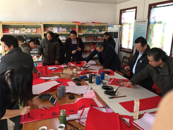应学校团委、美术系邀请,市文联副主席李君,市美协主席张涛,我校美术系主任、教授、市美协常务副主席褚滨,我校美术系教授、市书协副主席乌峰,市美协副主席李新雁、主席团委员郑和春、副秘书长赵艺博等艺术家们,一同到村为村民们书写春联。在写春联现场,艺术家们挥毫泼墨,把对村民美好的新春祝愿,写进了一幅幅精美的春联里。
