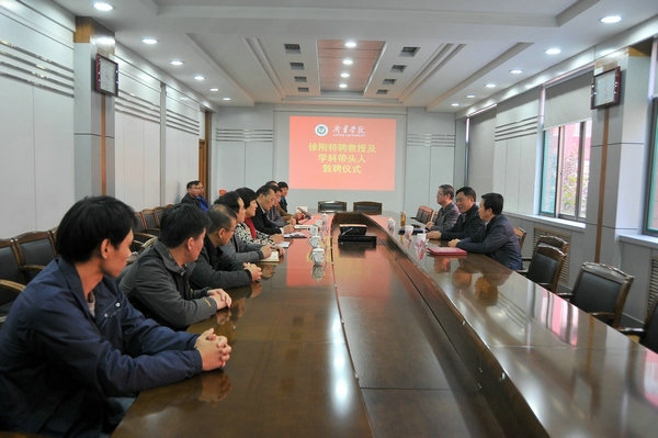 11月4日,山推工程机械股份有限公司首席专家、技术总监徐刚研究员受聘为我校特聘教授敦聘仪式在学校行政楼二楼会议室举行。党委副书记、院长吕灵昌教授向徐刚研究员颁发了特聘教授证书,副院长刘德胜教授主持了敦聘仪式。仪式结束后,徐刚先后到工程训练中心、科技文化大楼参观,并与相关专业骨干教师进行了交流。徐刚对我校应用型人才培养的办学定位给予充分肯定,并对我校在近年来的快速发展表示赞赏,同时在智能制造研究领域和产学研结合等方面提出了一些建设性的建议。(人事处、科研处、物理与信息工程系)
