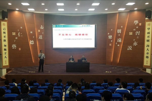 为开展创新创业教育,发挥优秀毕业生的示范引领作用,9月28日晚,文化传播系邀请2003届毕业生丁继民、高原作了以“不忘初心,砥砺前行”为主题的报告。文化传播系300余名师生代表参加了报告会。报告会由系主任王传武主持。