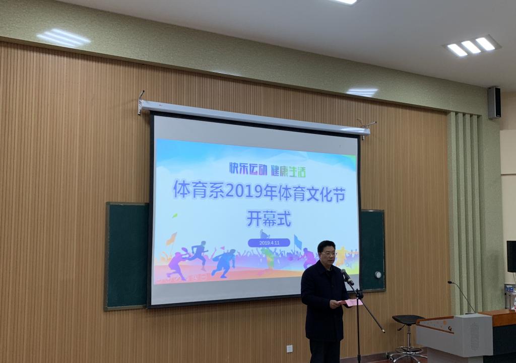 体育系党总支书记辛亚杰宣读了体育系2019年体育文化节活动实施方案,详细介绍了活动指导思想、活动主题、活动内容和计划安排。