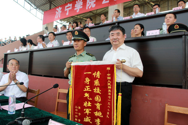 中国人民解放军71988部队少校程祥其作了讲话;优秀学员代表刘瑞雪、军训先进营获奖代表许言强先后发言。