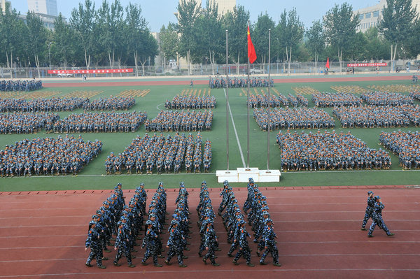 大会在雄壮的中华人民共和国国歌声中拉开帷幕。分列式上,全体受训学生迈着矫健的步伐,朝气蓬勃、意气风发通过主席台,接受学校领导的检阅,饱满的热情和高昂的斗志充分展示了军训成果。