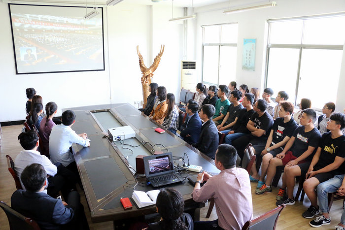 教育系认真组织党员、师生员工在二号楼C406集中收听收看大会现场直播,并通过召开座谈会、讨论会,畅谈学习习近平总书记重要讲话的感受。大家认为,作为党员和师生,我们要始终坚定理想信念,坚定中国特色社会主义道路自信、理论自信、制度自信、文化自信;始终坚守为民的情怀,牢记全心全意为人民服务的宗旨,牢记使命,甘于奉献;始终坚持理论与实践相结合,以习近平新时代中国特色社会主义思想为指导,不断从马克思主义中国化的最新理论成果中汲取科学智慧和理论力量,以更加昂扬的斗志、更加有为的举措,为学校的发展,为实现“两个一百年”奋斗目标、实现中华民族伟大复兴的中国梦不懈奋斗。