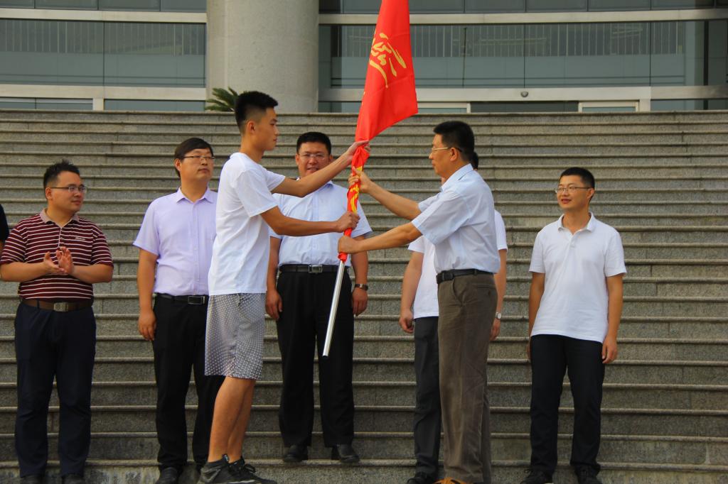 仪式上,马恩宣布实践团队出征,并为实践团队代表授旗。校团委书记马新蕾介绍了今年我校暑期社会实践活动的总体情况并对即将出征的志愿者们提出了殷切的期望和要求。指导教师代表音乐系党总支副书记孔全新、学生代表化学与化工系王佳姻分别进行发言,校学生会副主席葛瑞洁宣读了《个人安全责任承诺书》,数学系刘昊同学带领现场所有团队成员集体宣誓。