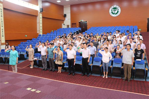 大会在雄壮的国歌声中拉开帷幕。在教育管理科周颖的领誓下,全体党员党旗下重温入党誓词,庆贺党的95岁生日,表达了为共产主义事业奋斗终身的决心。在辅导员孔瑞的领誓下,全体辅导员面对高校辅导员誓词庄严宣誓,牢记使命和责任,时刻提醒自己为人师表、爱岗敬业,关爱学生、勇于创新。