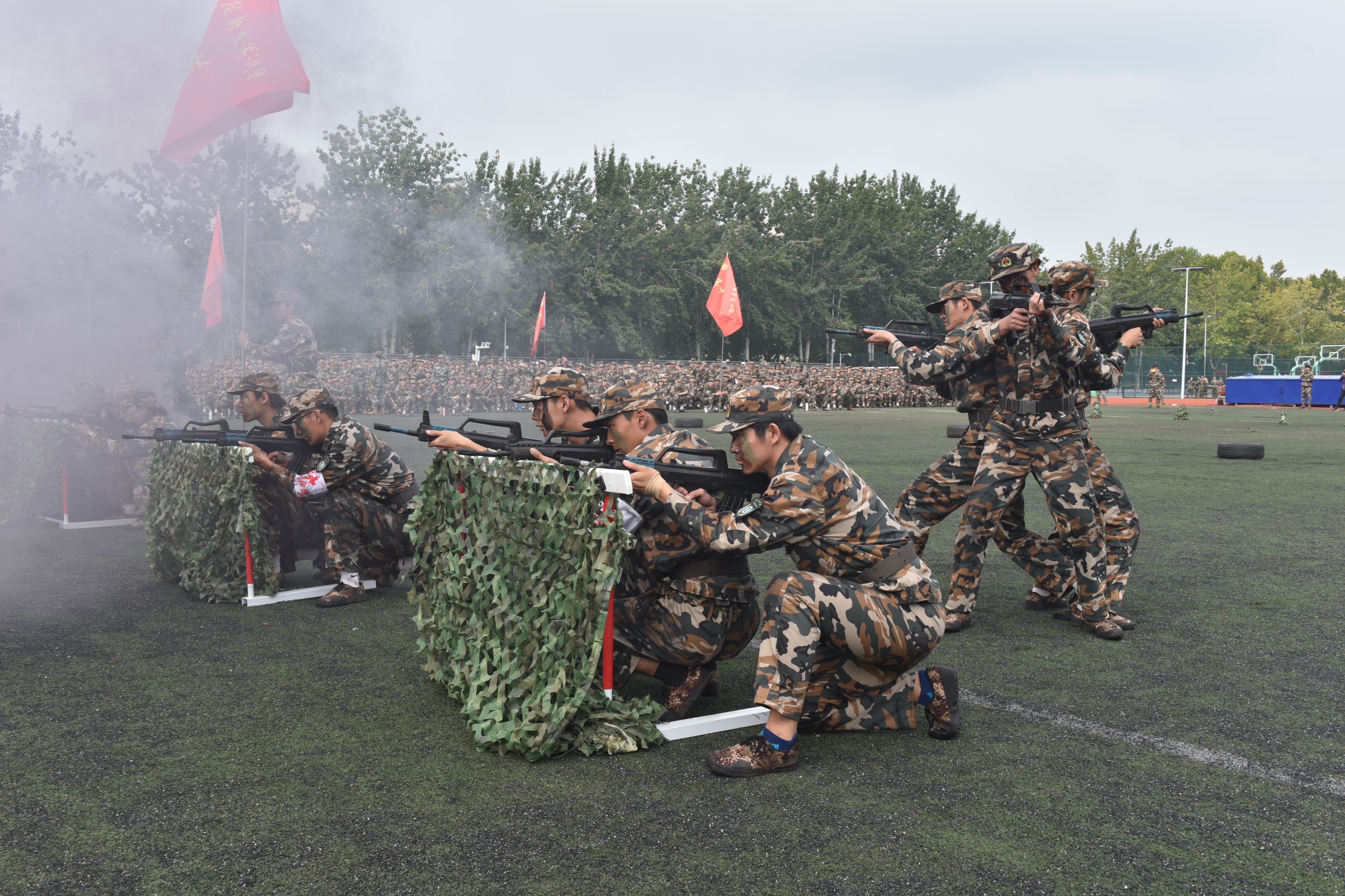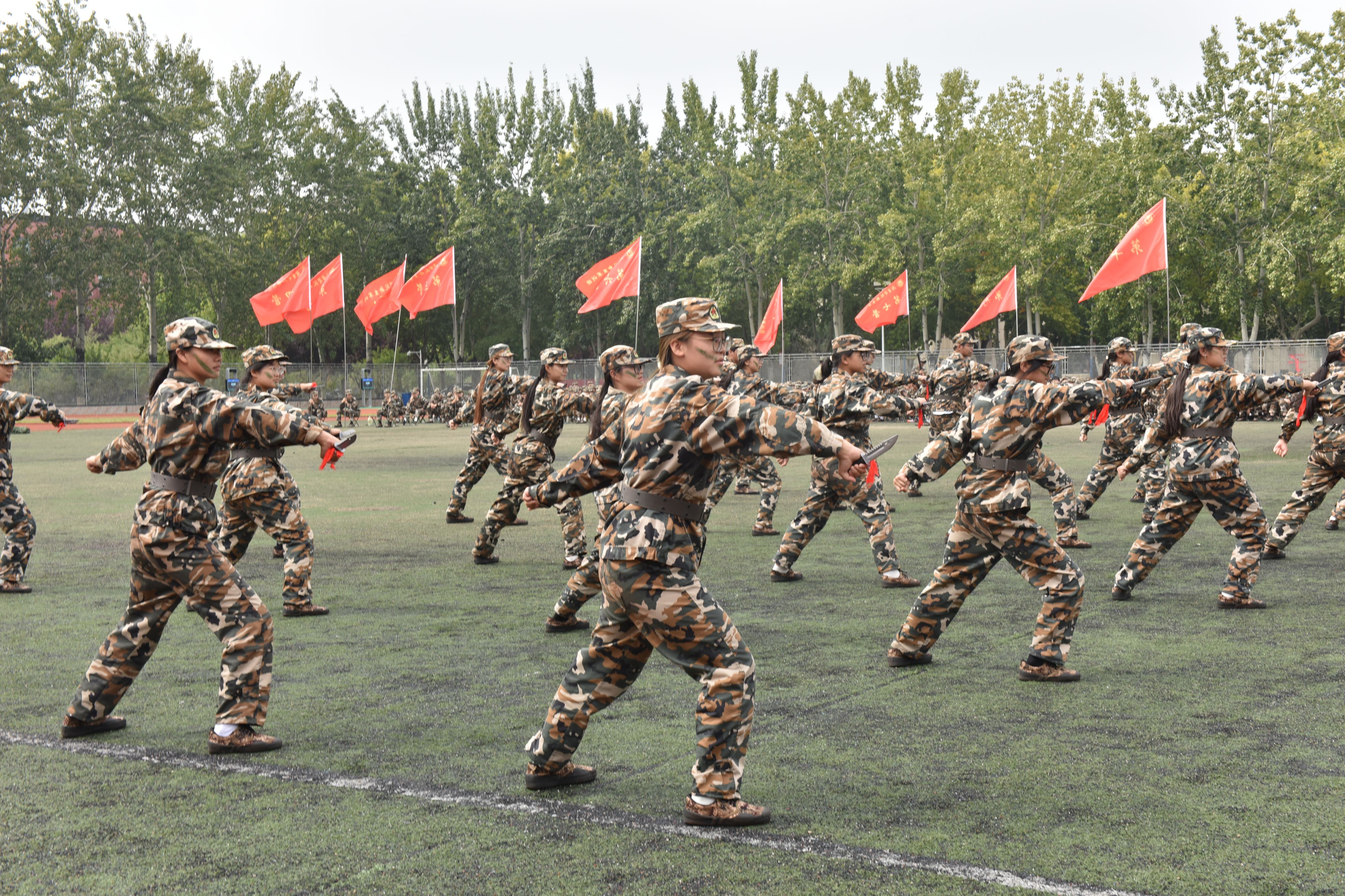大会在雄壮的国歌声中拉开帷幕。队列会操,各方队步伐铿锵、军容整肃,尽显青春风采;方阵展示,擒敌拳、应急棍、匕首操、刺杀操刚劲凌厉、整齐划一,凝聚昂扬锐气;战术演练,学员们穿越火线、匍匐前进,在擒拿格斗、战场救护等实战科目中锤炼本领。全体参训学生以饱满姿态投入,精彩表现赢得阵阵掌声,尽显新时代青年蓬勃朝气与坚毅品格。
