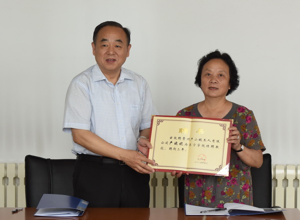 6月13日上午,我校于美术系高新区B1教学楼307会议室隆重举行严晓妮特聘教授敦聘仪式。校党委委员、副院长朱松涛出席仪式,学校发展规划处处长朱桂林、美术系领导及教师参加仪式。朱松涛代表学校与贵州省工艺美术大师严晓妮签署聘任协议并颁发聘书。