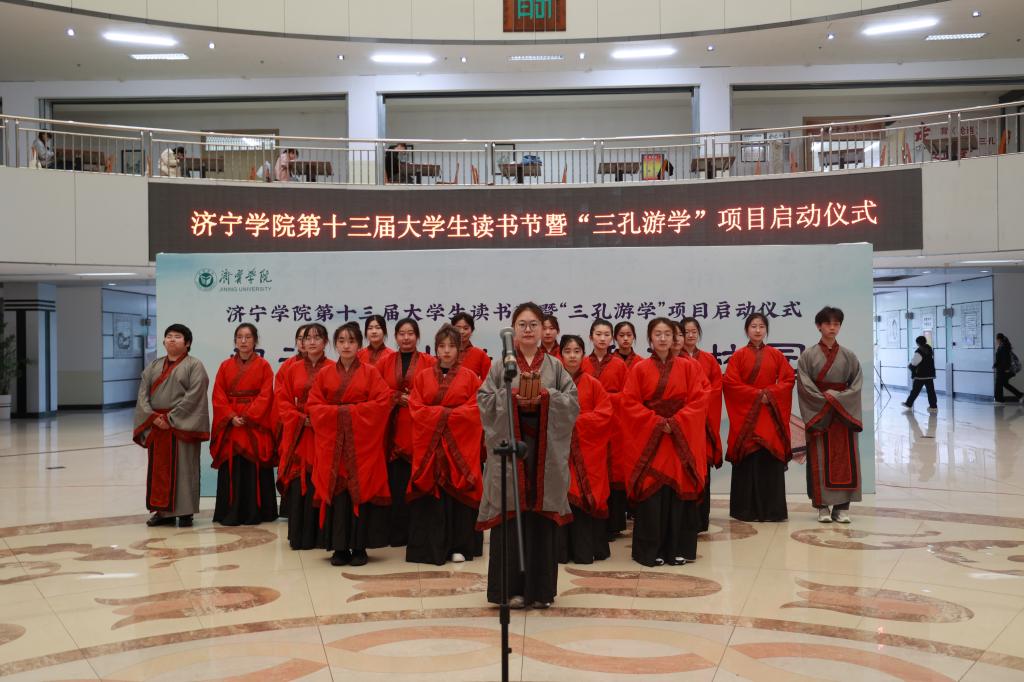 赵明在主持启动仪式时,希望同学们要充分认识读书活动的重要意义,在读书中不断增长知识、增加智慧、增强本领,养成终生学习、终生读书的好习惯。把读书与个人成长相结合,与推动书香校园建设相结合,与实现中华民族伟大复兴的中国梦相结合,切实提高综合素养。尹春光宣读了《济宁学院第十三届大学生读书节系列活动实施方案》;曲阜市文物局副局长韩凤举宣读了《“三孔游学”项目启动方案》;刘克非宣读了《关于授予赵淑娴等16名同学“阅读推广大使”称号的决定》;图书馆馆长王绍锋宣读了《关于表彰济宁学院2022年度“阅读之星”的决定》;校团委书记张静宣读了《关于授予李慧鑫等50名孔子学堂学员结业证书的决定》。