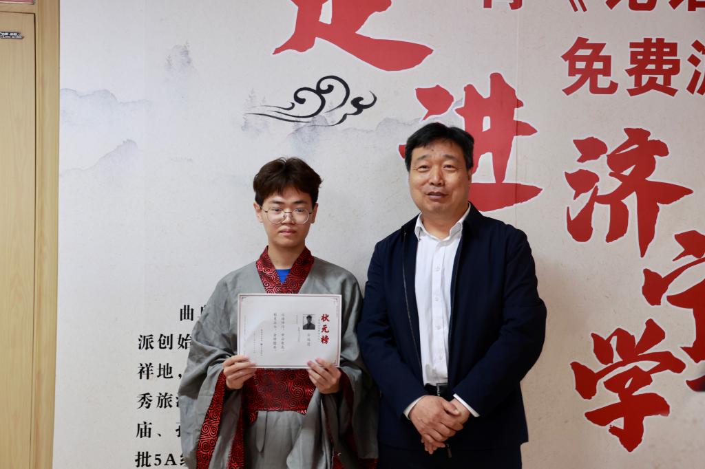 活动中,王清明对曲阜市给予学校的支持和帮助表示感谢,对活动的举办给予充分肯定。为开展好“大学生读书节”和“三孔游学”活动,他提出几点希望和要求,一是开卷有益,养成“爱读书”之道,要激发阅读的内生动力,知学、好学、乐学,不断提升读书境界;二是笃学不倦,磨砺“勤读书”之道,强调“为学之要贵在勤奋、贵在钻研、贵在有恒”,读书要志存高远、励志笃学;三是精益求精,斟酌“读好书”之道,要多读书、读好书,从优秀作品中汲取人生智慧和前行力量;四是融会贯通,把牢“善读书”之道,通过研学和实践逐步积累人生经验和社会知识,树立起远大的理想,把自己的学习和研究同国家与人民的需求紧密结合起来。