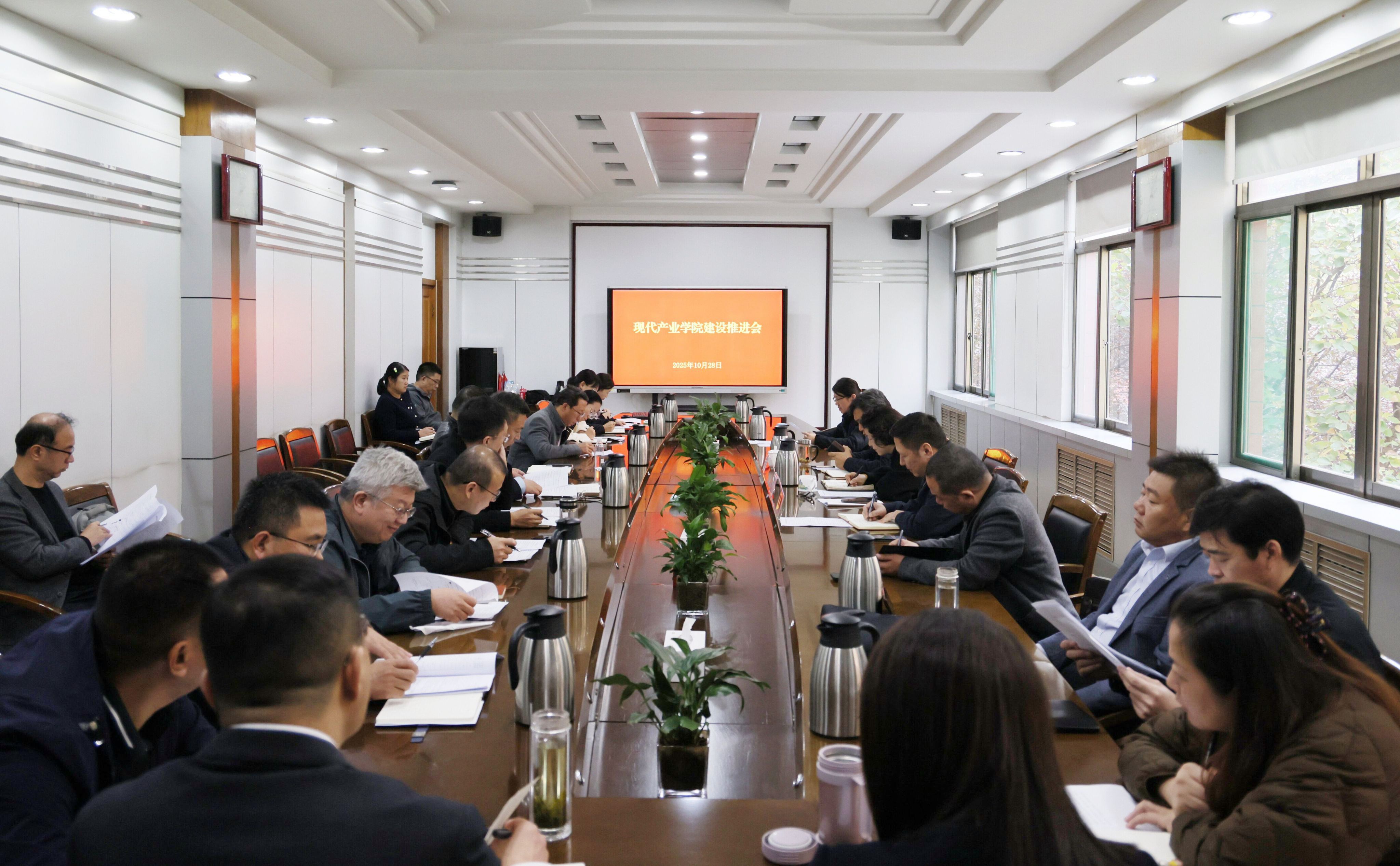 10月28日下午,学校在行政楼A221召开现代产业学院建设推进会。学校党委副书记、校长王清明,党委委员、副校长尹春光出席会议,各二级学院院长、现代产业学院院长、教务处负责人及相关人员参会。会议由尹春光主持。