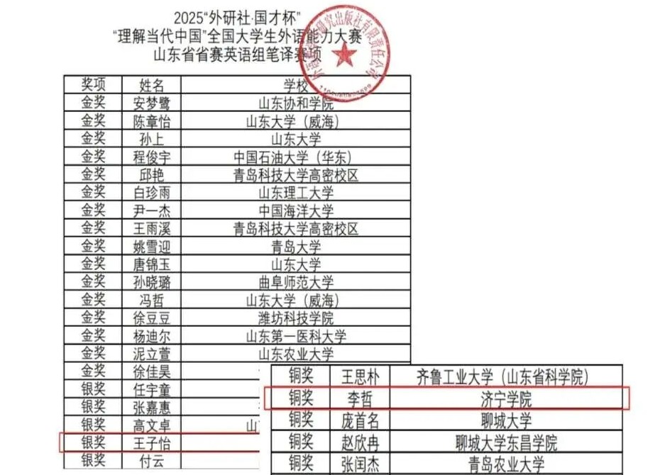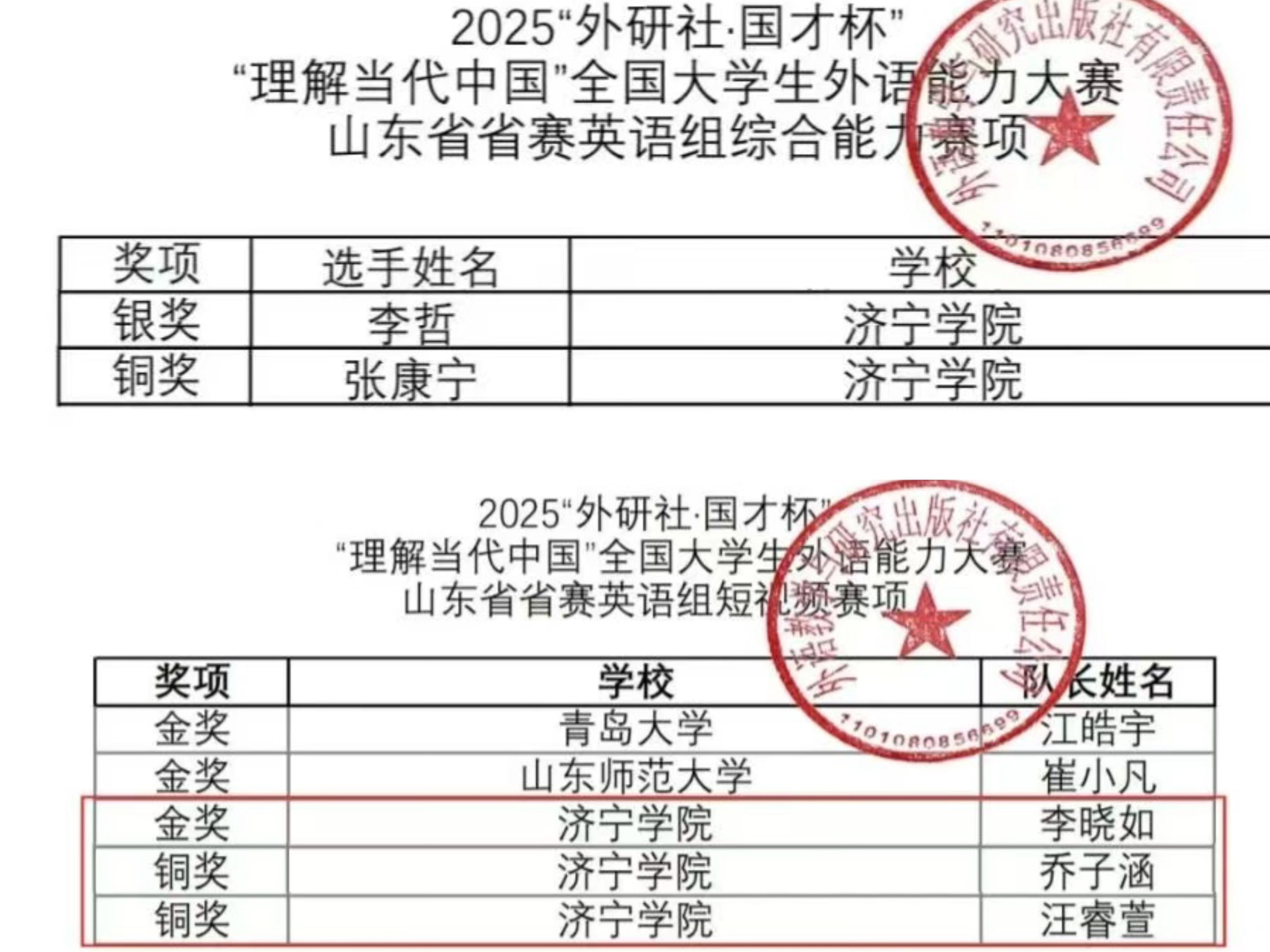 近日,2025年“外研社·国才杯”“理解当代中国”全国大学生外语能力大赛省赛结果揭晓。我校外国语学院学子在与全省各高校优秀选手的激烈角逐中,凭借扎实的语言功底、深厚的家国情怀和出色的综合素养,脱颖而出,斩获佳绩。