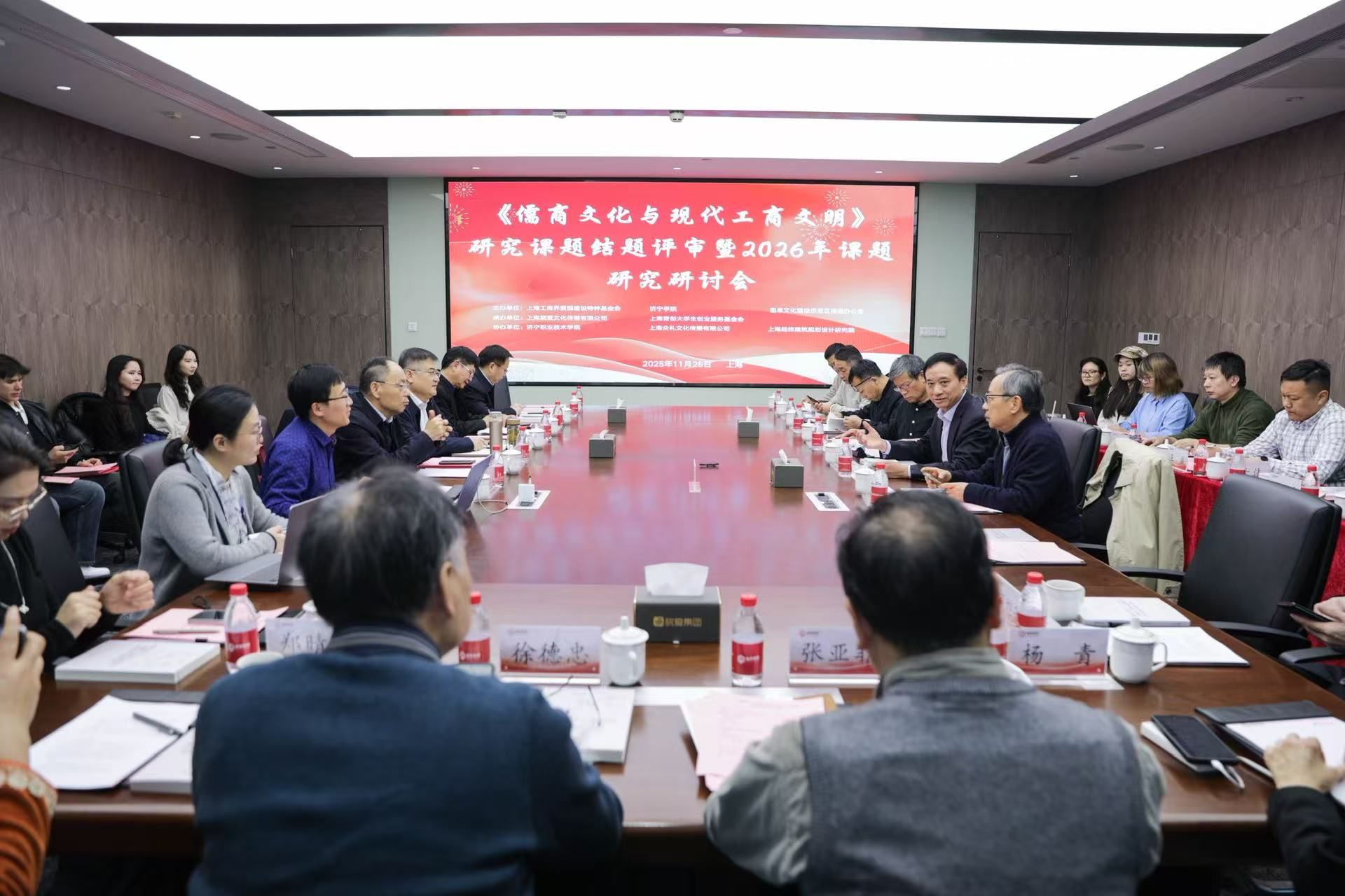 11月25日,“儒商文化与现代工商文明”课题结题评审暨2026年课题研究研讨会在上海举行。会议邀请上海市人大常委会原副主任、全国政协常委、民盟中央原副主席、同济大学原副校长郑惠强,上海工商界爱国建设特种基金会理事长、爱建集团党委书记、监事会主席范永进,来自高校、企业和政府相关部门的30余位专家学者、企业家代表,以及俄罗斯、蒙古、哈萨克斯坦等国的留学生代表出席。济宁学院党委副书记丰家雷出席会议并致辞,会议由济宁市十七届人大常委会副主任陈国华主持。