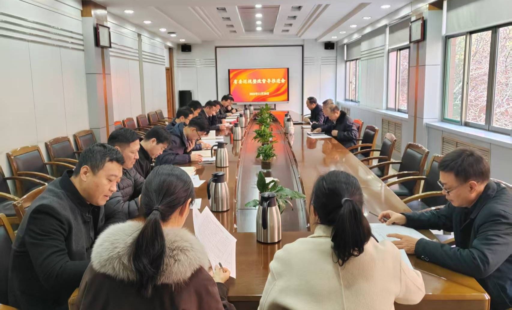 11月28日上午,学校召开省委巡视整改督导推进会,全面总结前一阶段巡视整改工作进展情况,对下一阶段巡视整改工作进行再部署、再推进。巡视整改督导组负责人、校党委副书记丰家雷,校党委委员、纪委书记孔繁润出席会议。巡视整改各责任单位部门负责人、巡视整改专班人员参加会议。会议由党委(院长)办公室主任张永刚主持。