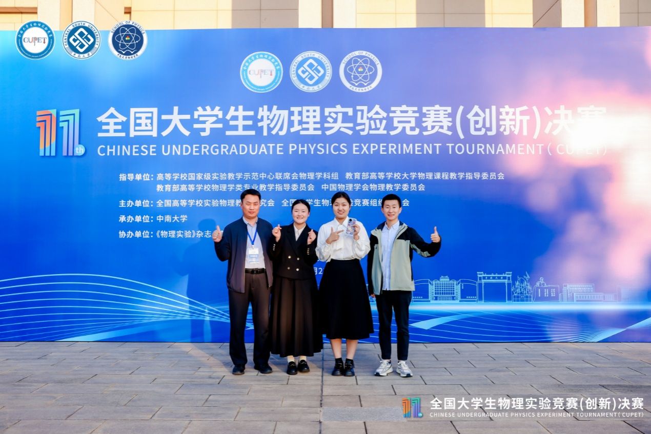 11月21日至23日,第十一届全国大学生物理实验竞赛(创新)决赛在中南大学举行,通过校赛、省赛选拔,来自全国331所高校的750支队伍最终从3260支预赛队伍中脱颖而出。我校物理与电子工程学院参加讲课类决赛的2支队伍(每校限额不超过2支队伍)全部获得一等奖,实现连续两年参赛队伍全部获得一等奖。参加自选类决赛的1支队伍获得三等奖,也是我校首次在该赛事实物类赛道获得国奖。同时学校还被授予优秀组织奖。