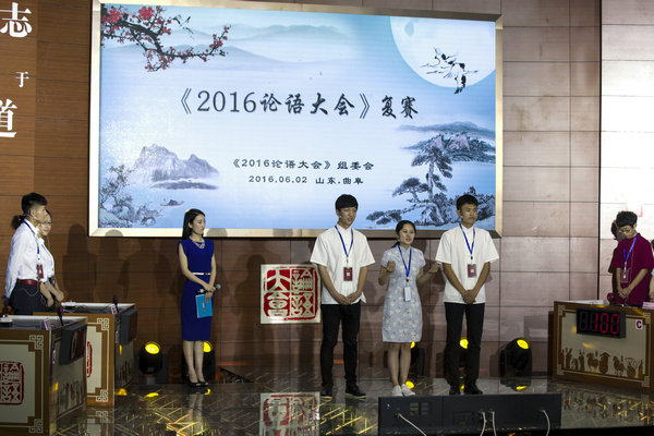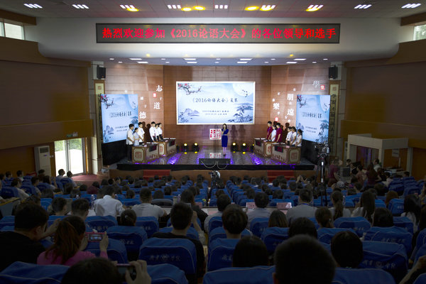 为深入贯彻落实党的十八大和十八届三中、四中、五中全会精神,落实习近平总书记视察曲阜时的重要讲话精神,进一步弘扬中华优秀传统文化,打造儒学经典品牌,6月2日,由中共山东省委高校工委、中共济宁市委主办,曲阜市人民政府、山东广播电视台电视生活频道承办的2016年全省高校大学生“论语大会”在我校理科楼报告厅举行了第一场复赛,来自聊城、泰安、菏泽、济宁、枣庄、临沂等鲁西南地区的12所高校近百名选手参加了这次复赛。中国孔子研究院院长、研究员、博士生导师杨朝明担任大赛的主任评委,学校党委委员、纪委书记许记中及党委(院长)办公室、党委组织部、党委宣传部、学生工作处、团委、安全保卫处等部门负责人、各系党总支书记观看了比赛。