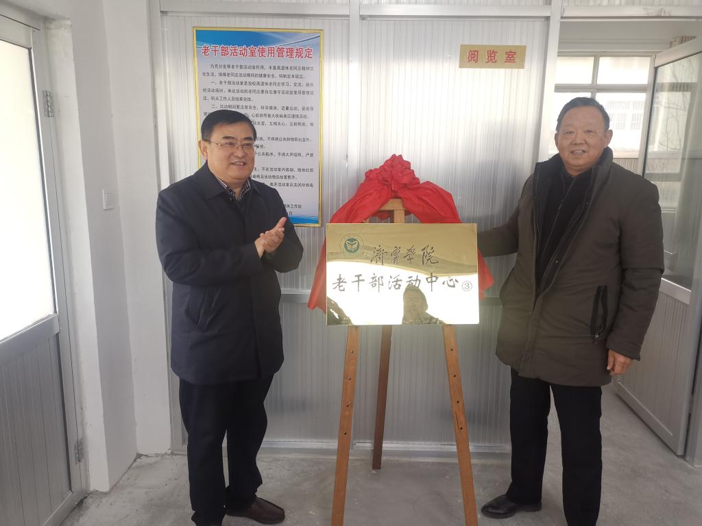 在热烈的掌声中,党委副书记丰家雷、老干部第六党支部书记王民杰为活动室揭牌。王民杰代表离退休老同志发言,衷心感谢学校和领导对离退休老同志的关心关爱,表示将协同离退休部门共同利用好活动室平台,不断加强离退休老同志思想和政治建设,永葆从教初心,力所能及发挥余热,展现济宁学院人的时代风采。离退休工作处副处长郭克功介绍了活动室改建情况。