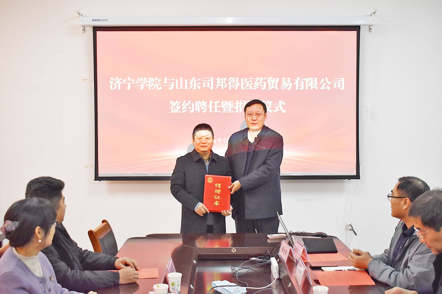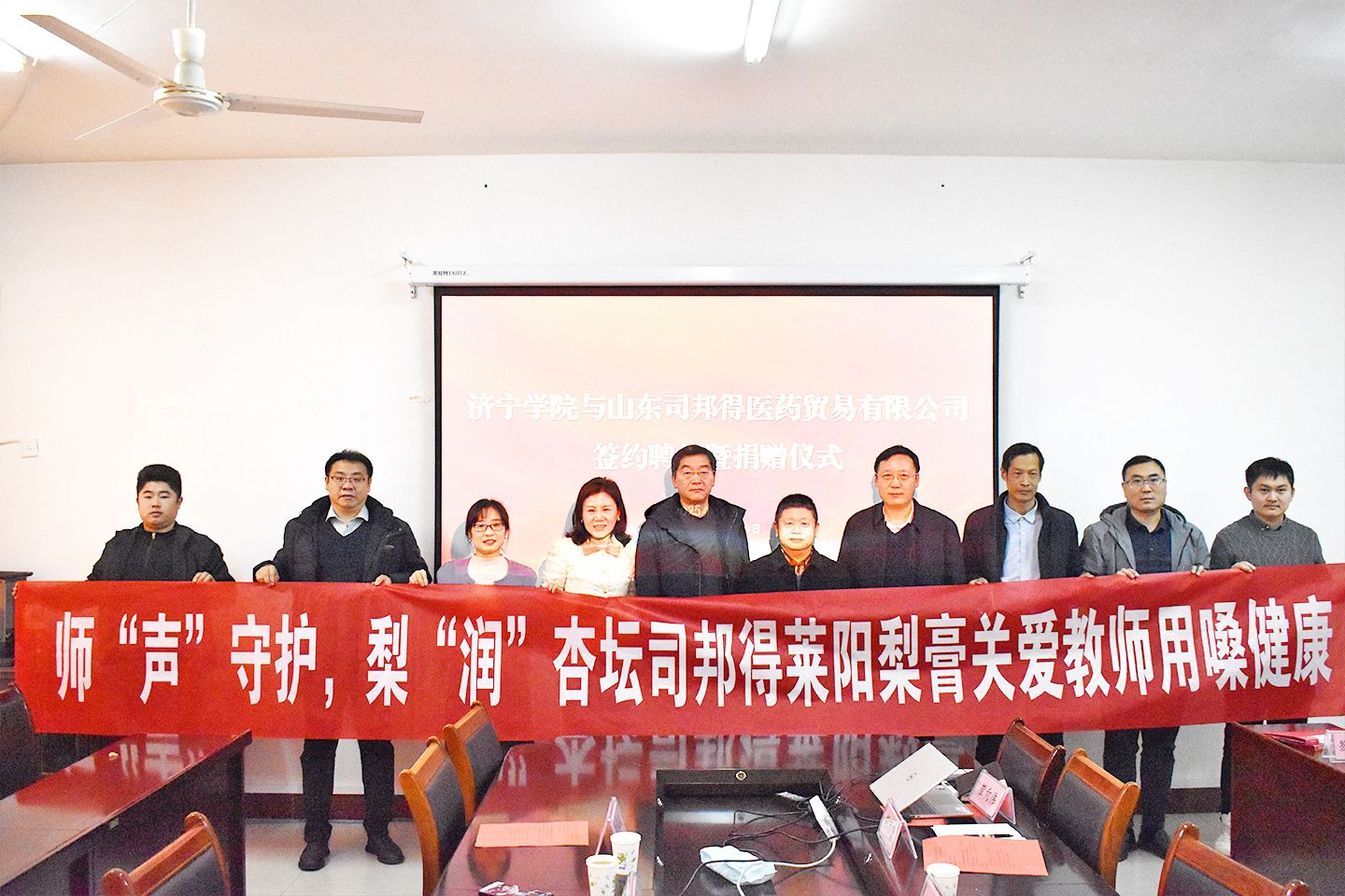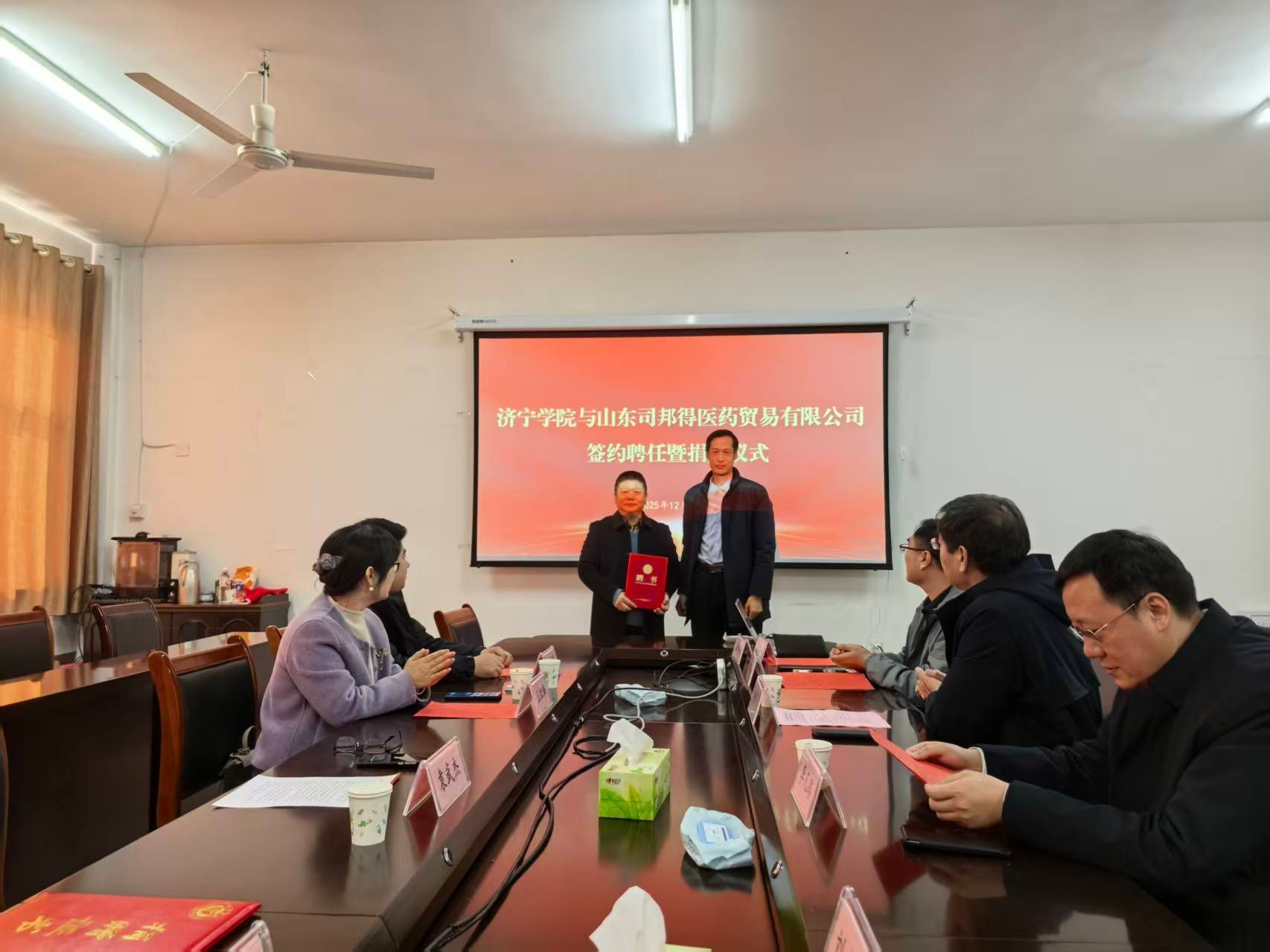 12月16日上午,山东司邦得医药贸易有限公司董事长袁武杰一行四人莅临我校,围绕深化校企协同育人、推进产教深度融合展开座谈,并同步举办捐赠仪式。学校党委委员、副校长李凡路在理科楼9A408室热情接待了袁武杰一行并出席座谈会。活动由工会(妇女工作委员会)主席张书义主持。生命科学与工程学院党委书记刘忠建、副院长胡彦营、教授李明丽及部分教师代表参加活动。