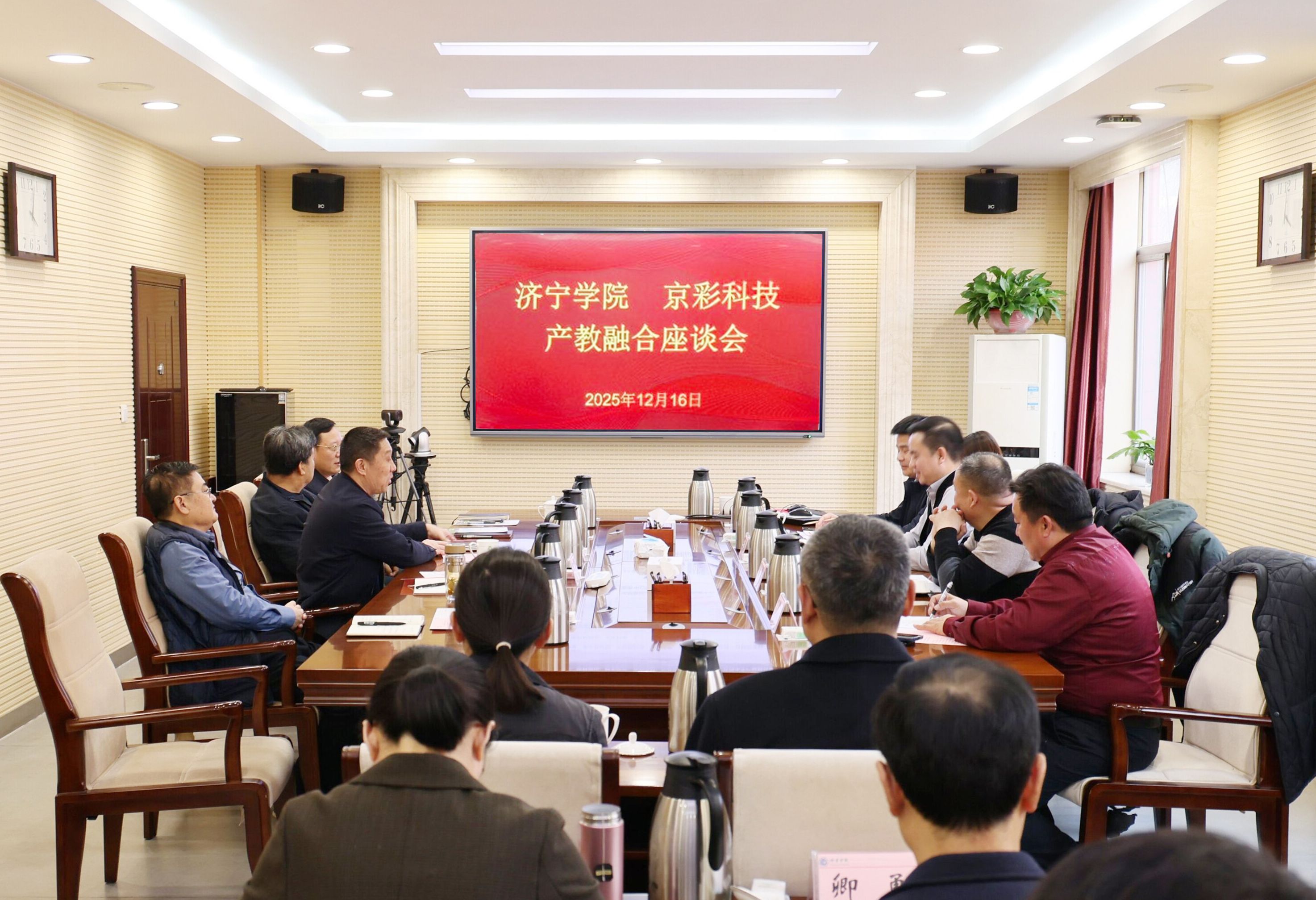 汪世龙详细介绍了京彩科技的业务布局、技术优势及发展规划。他指出,济宁学院在应用型人才培养方面的优势与企业发展需求高度契合,期待与学校通过共建实践基地、联合开发课程等方式,打造校企合作示范项目,推动产学研用深度融合,实现校企双方优势互补、互利共赢。