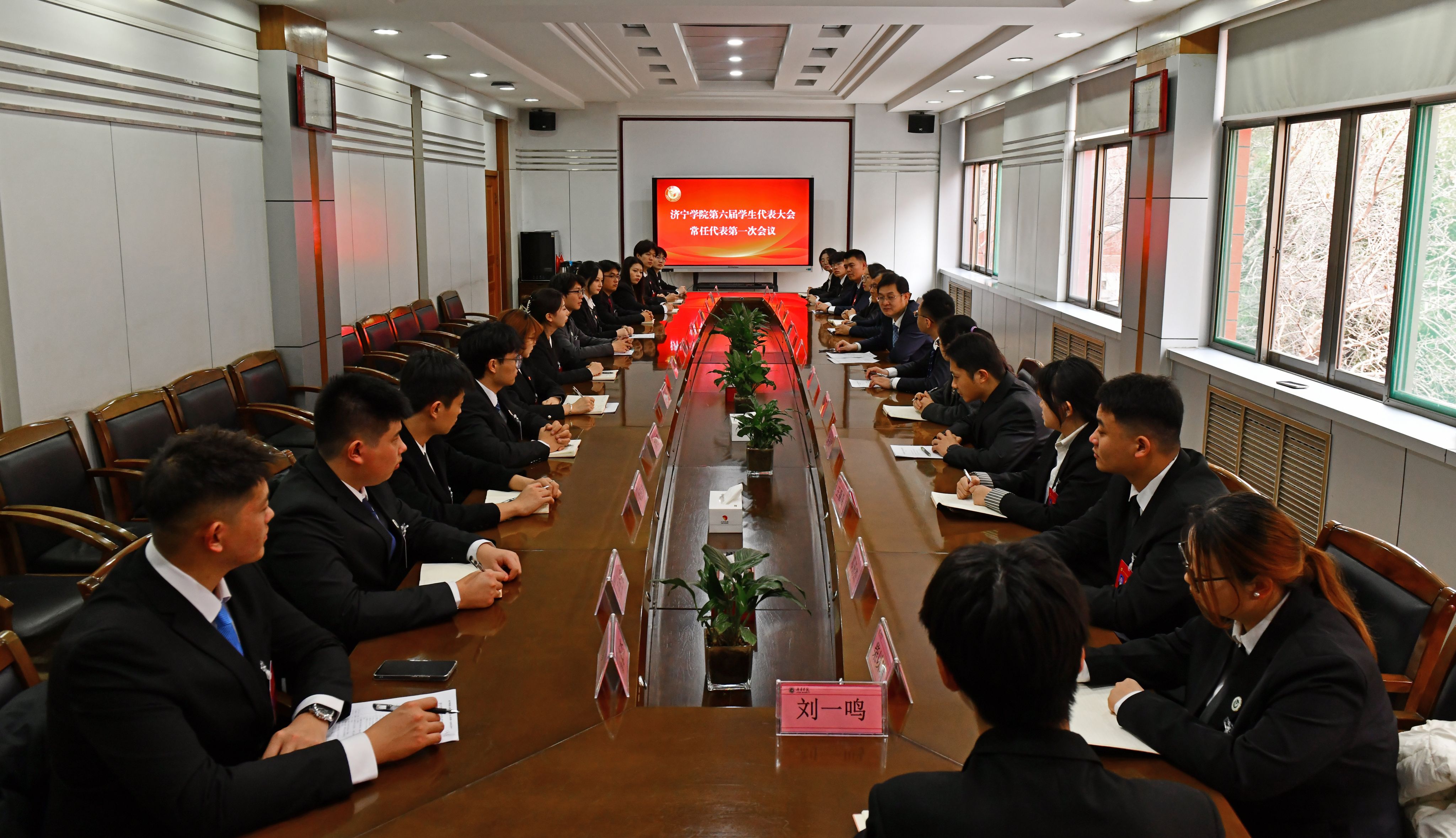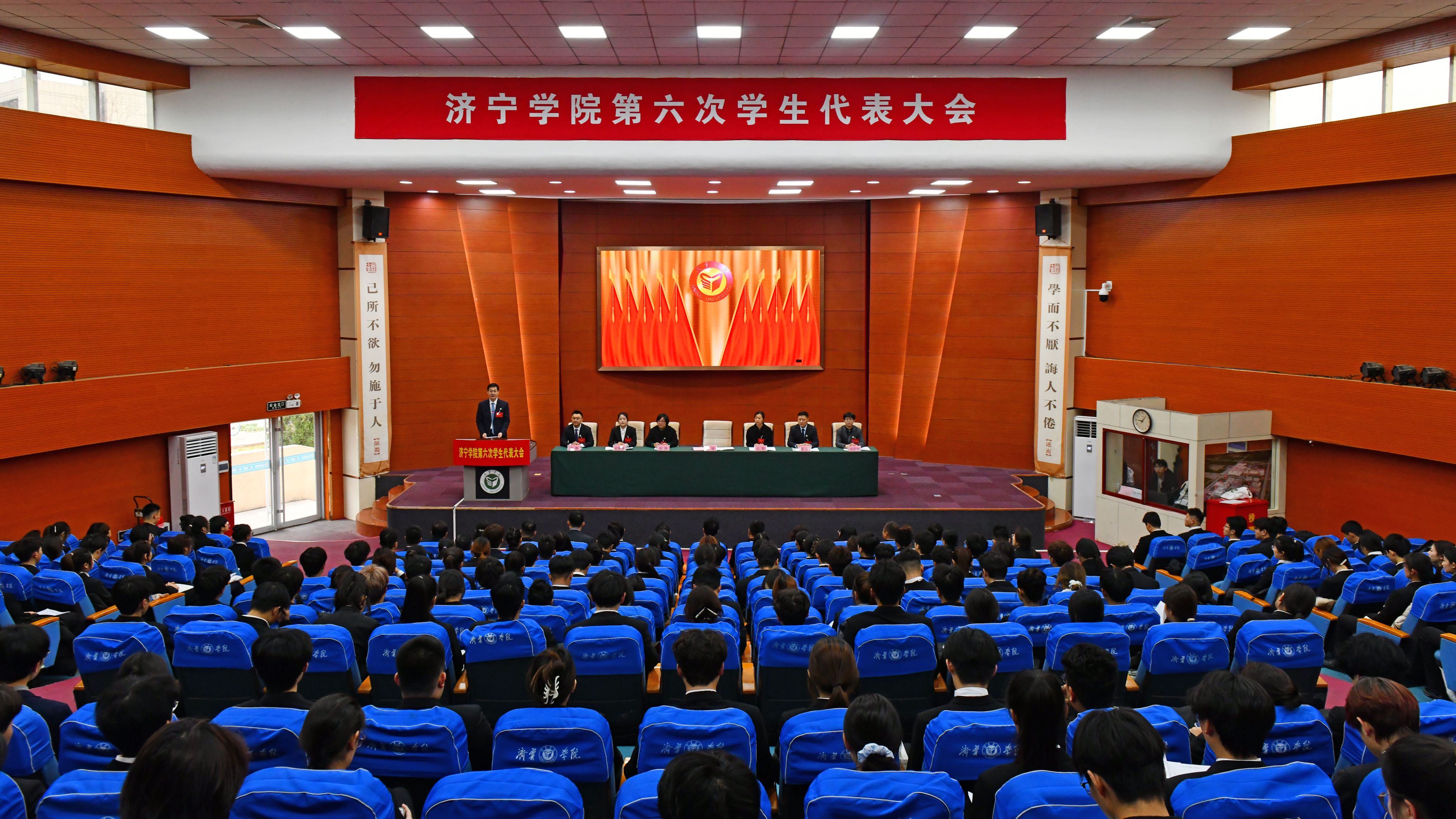 曲阜师范大学学生会主席团成员侯雅琳代表兄弟院校向大会召开表示祝贺。大会审议并通过了济宁学院第五届学生会工作报告,选举产生了新一届学生会主席团和学生代表大会常任代表。