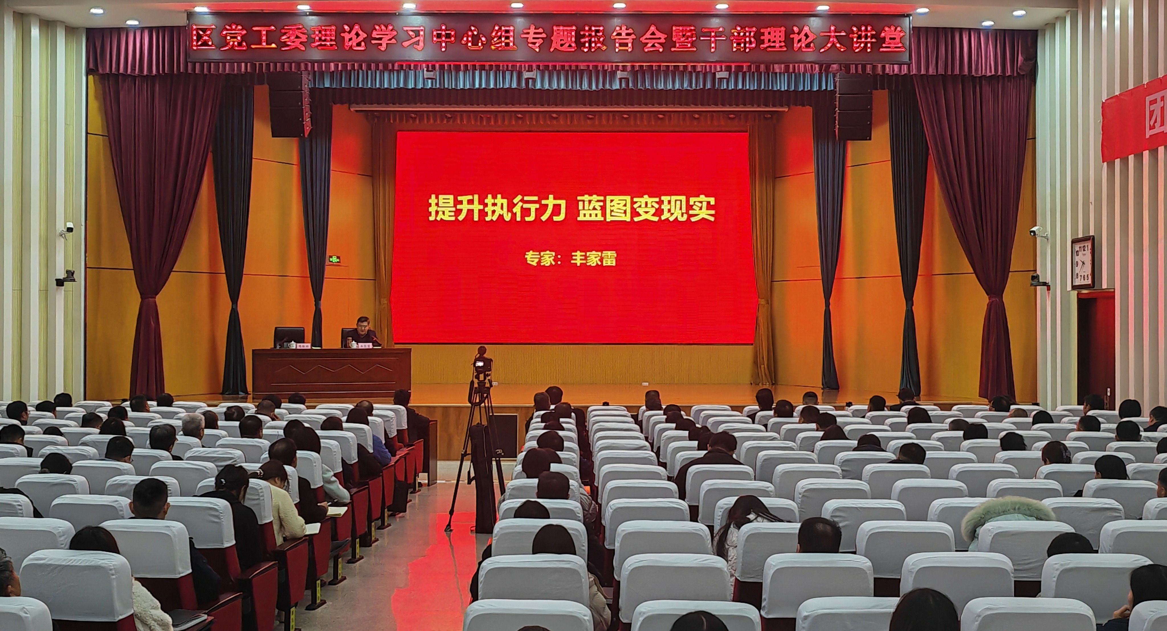 活动期间,丰家雷为新区镇街及区属各部门单位、国企主要负责同志、中层以上干部、社区(村居)代表做专题报告。他以“提升执行力,蓝图变现实”为题,结合党的二十届四中全会精神要求,从提升认知能力绘就美好蓝图、提升实战能力重塑资源最优、提升领导能力成就团队理想、提升组织能力汇聚磅礴力量、提升亲和能力形成向心合力五个方面,系统、生动地阐述了提升执行力的核心要义与实践路径。报告内涵丰富,指导性强,对准确理解执行力内涵,切实增强狠抓落实、攻坚克难的本领,具有重要的启发和指导作用。