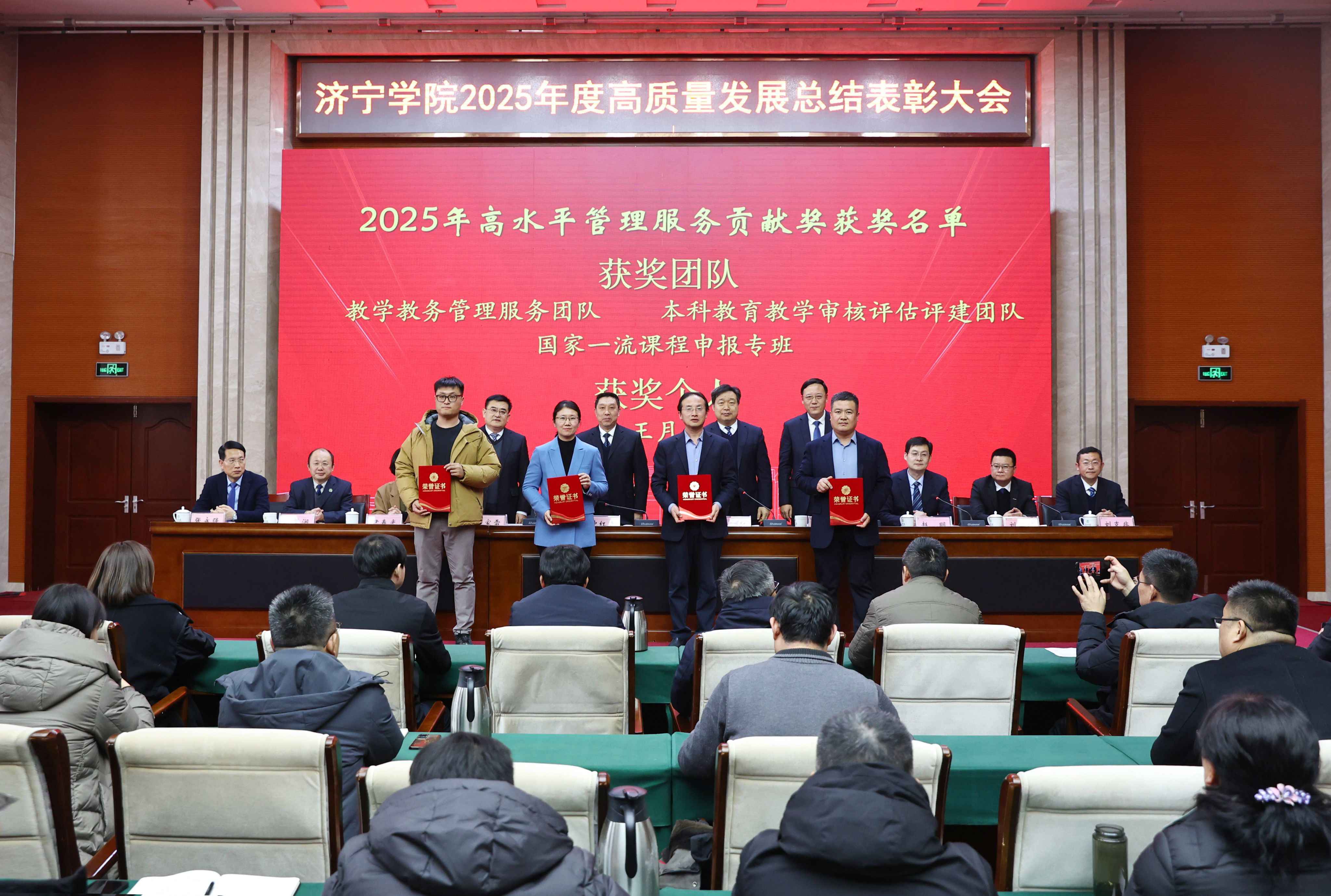 会上,丰家雷宣读了《关于2025年度中层单位(领导班子)和处科级干部优秀等次的表彰决定》;李凡路通报了2025年度学校服务社会获得上级及社会各界肯定和表扬情况,宣读了《关于表彰高水平管理服务贡献奖的决定》;尹春光宣读了《关于表彰高水平教学贡献奖的决定》,2025年度获省级以上教学奖励、省级以上人才称号人员名单;赵明宣读了2025年度获省级以上学生工作奖励人员名单;刘国栋宣读了《关于表彰高水平科研贡献奖的决定》,2025年度获省级以上科研奖励人员名单。与会校领导班子成员为获奖单位和个人颁奖。