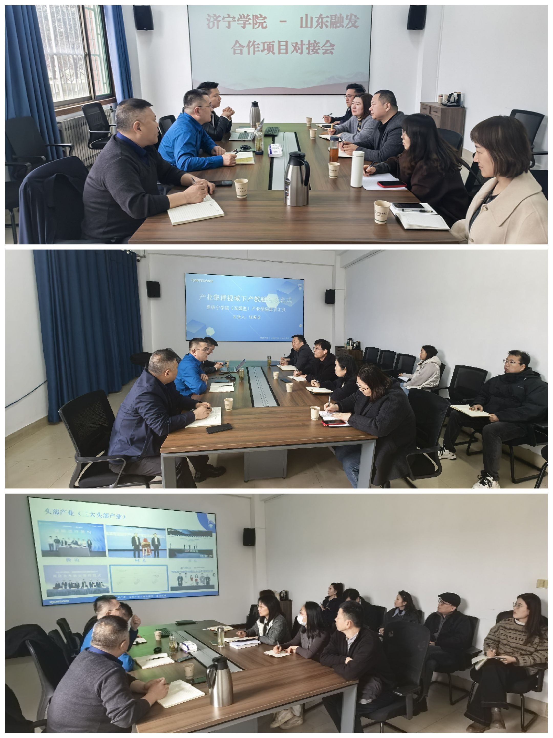 座谈会上,丰家雷对张振龙一行的到访表示欢迎。他指出,学校高度重视校地、校企协同发展,愿与山东融发发挥各自优势,在专业建设、实践教学、成果转化、实训基地建设等方面精准对接、深度合作。希望通过本次座谈对接,细化合作方案,明确实施路径与推进计划,推动合作项目落地见效,助力双方高质量发展。