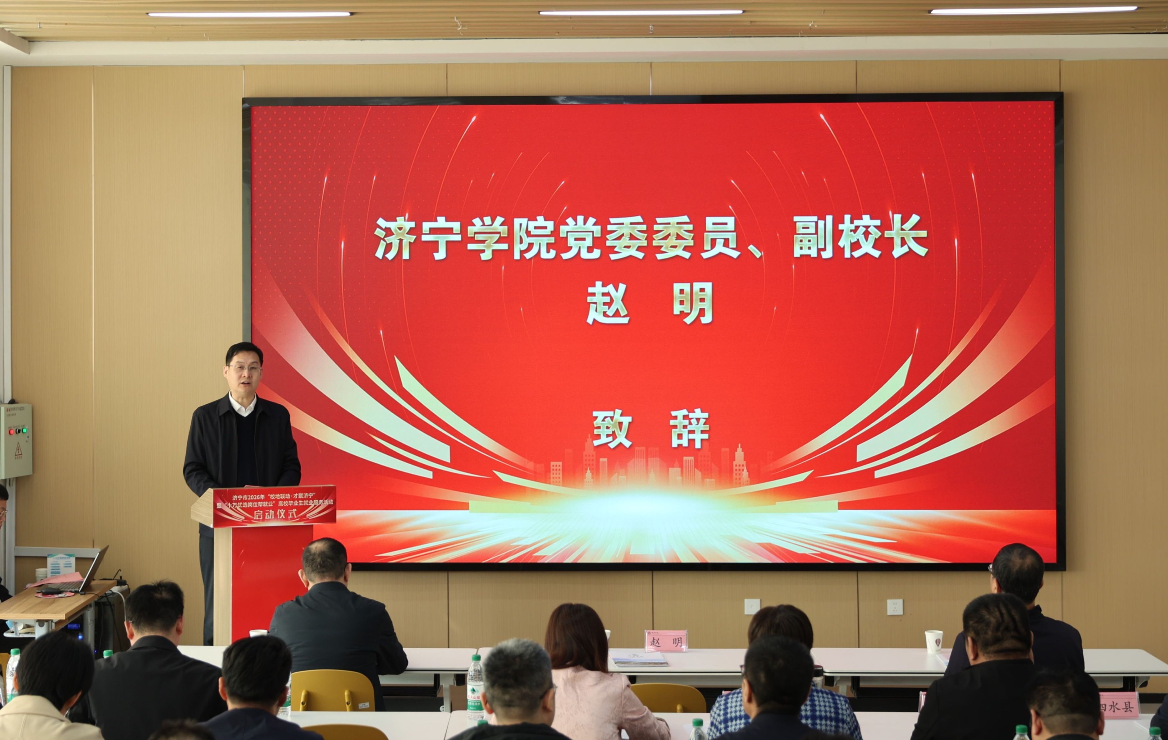 3月27日上午,由济宁学院、济宁市人力资源和社会保障局、济宁市总工会联合举办的2026年“校地联动・才聚济宁”高校毕业生就业服务活动启动仪式,在我校大学生就业创业赋能中心隆重举办。我校党委委员、副校长赵明,市就业人才中心党委副书记、市人社局办公室主任杨峰,市总工会三级调研员赵庆国等出席活动。各学院党委副书记、济宁市各县区人社部门负责人、师生企业代表参加仪式。我校学生工作处处长张静主持仪式。