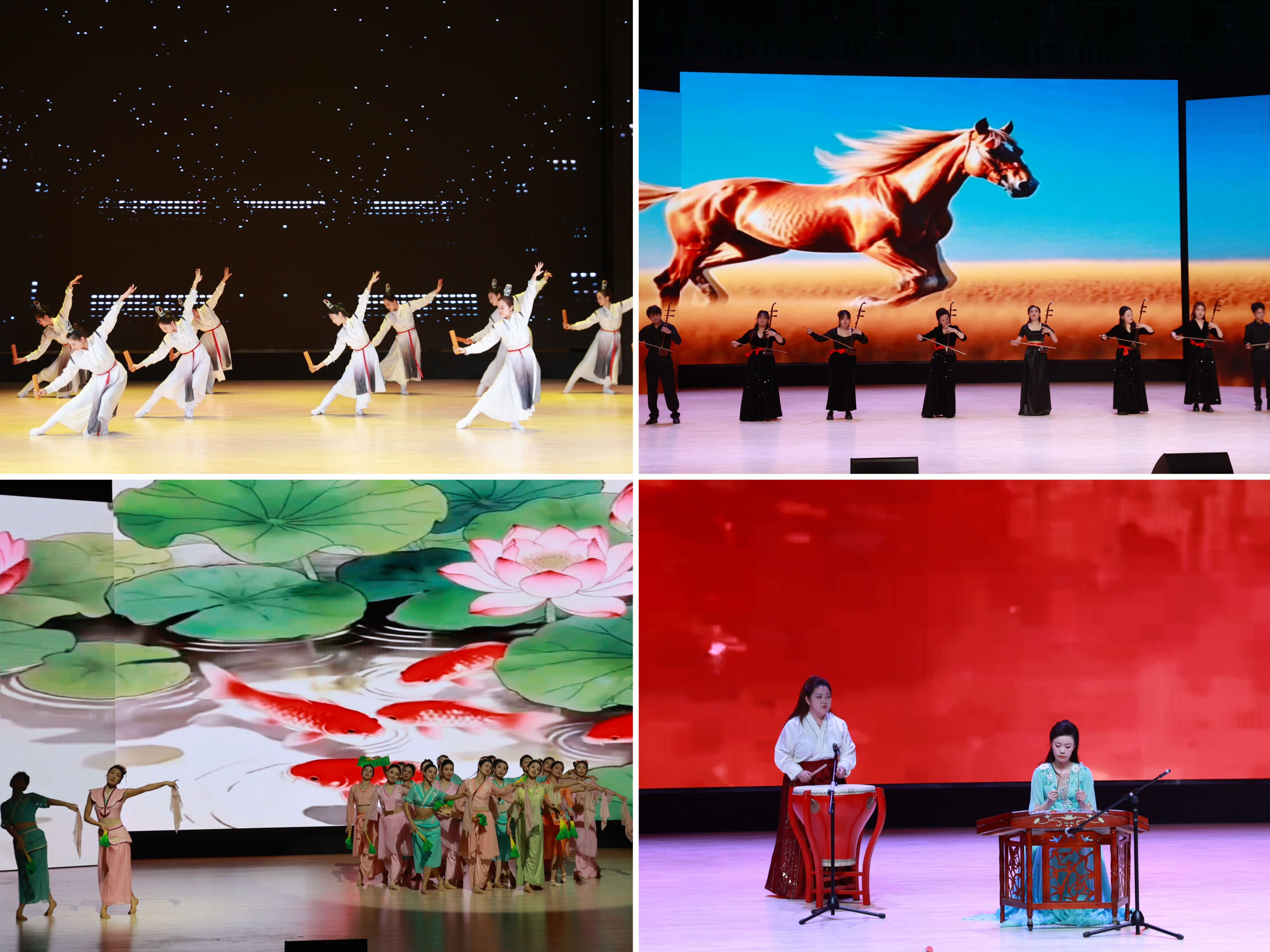 晚会在女子群舞《孔老师》中拉开帷幕,舞者们以行云流水的肢体语言,诠释着圣人传道授业的坚守与风骨;二胡齐奏《马踏春风》节奏激昂,乐声中满是春日生机与骏马豪情,瞬间点燃现场氛围;女子群舞《江南》则以灵动身姿勾勒出水墨江南的温婉诗韵,尽显中华传统美学之美。女声独唱《星辰大海》用温暖的旋律唱出青年奔赴未来的追梦力量;扬琴独奏《将军令》搭配铿锵大鼓伴奏,清脆激昂的琴音尽显中华器乐的独特魅力;男女二重唱《祝福祖国》将对祖国的真挚祝福融入歌声,旋律悠扬,情感真挚;男声二重唱《天地龙鳞》以磅礴曲调唱响家国沧桑与复兴壮志,让现场观众感受到浓浓的家国情怀。