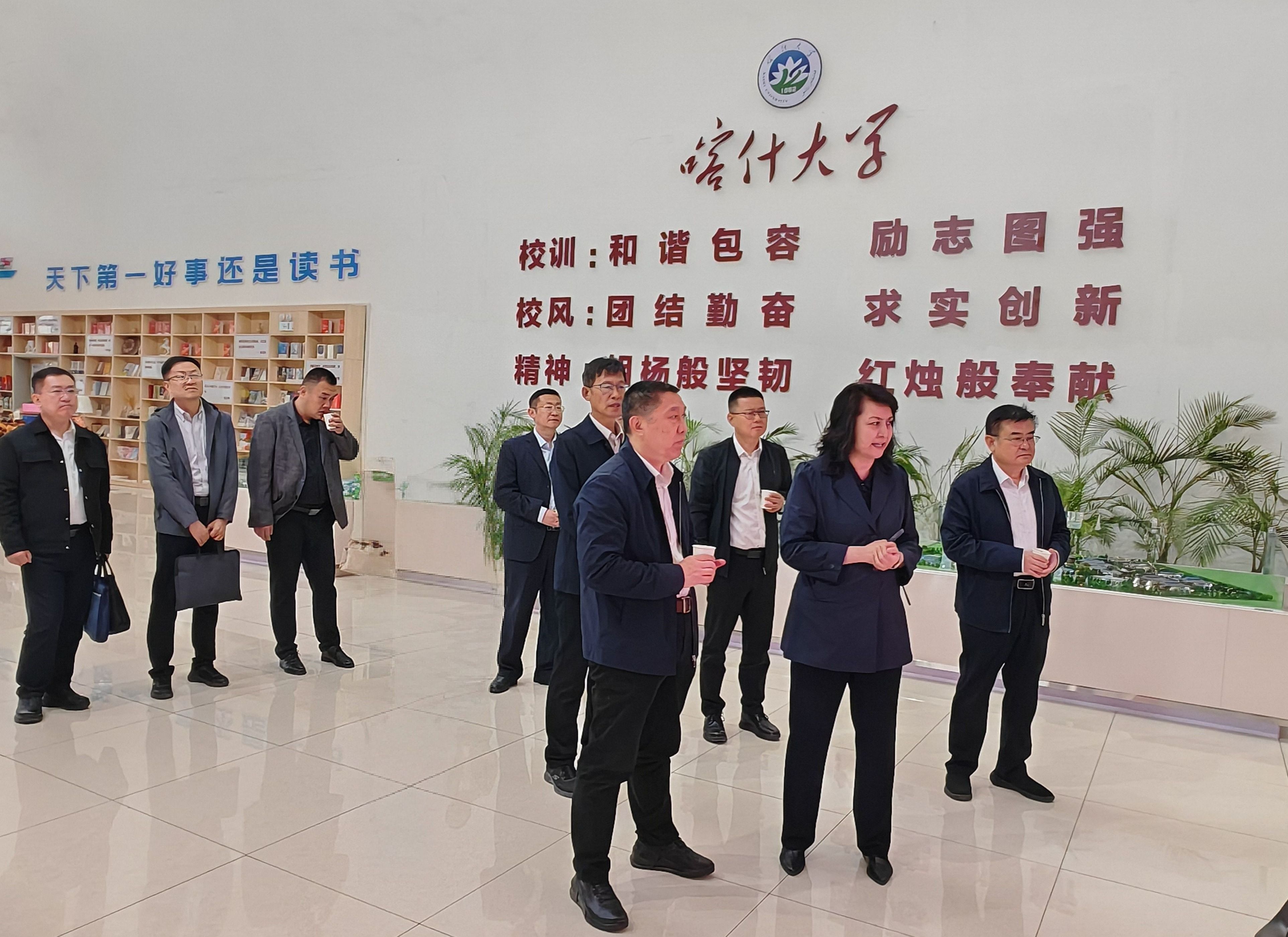 13日,仲红波一行走进喀什大学,在喀什大学党委副书记、校长帕力旦·吐尔逊,党委副书记邓勇等校领导的陪同下,参观学校三校区沙盘、思政教育基地、黄胄艺术研究院及自然博物馆,了解喀什大学办学布局、思政建设、学科特色和校园文化培育等办学发展情况。