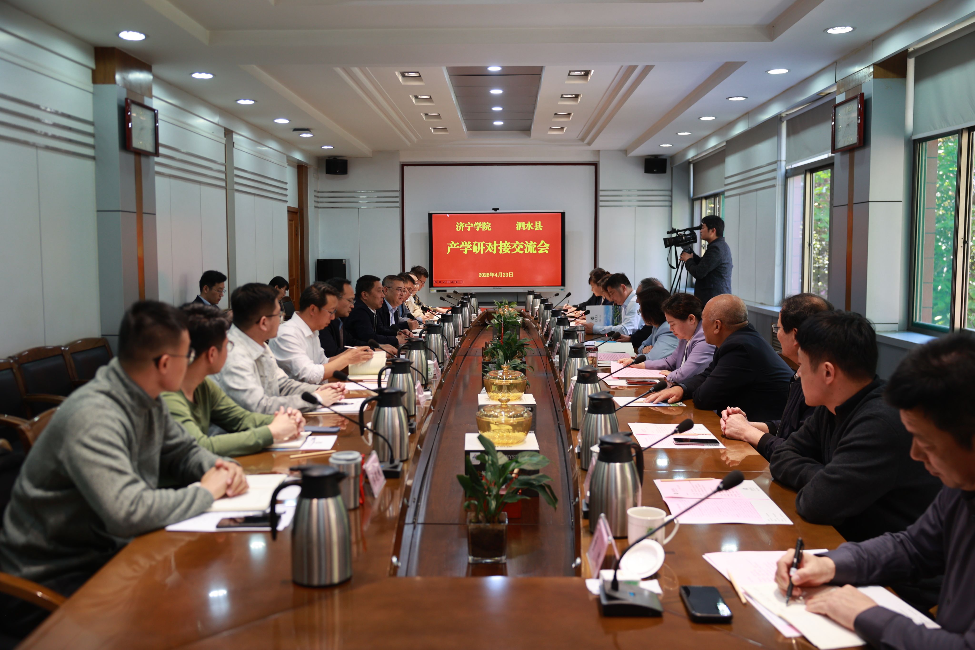 4月23日下午,济宁学院—泗水县产学研对接交流会及特聘教授聘任仪式在学校行政楼成功举行。活动聚焦校地校企协同创新、科技成果转化与人才共育,搭建精准对接合作平台,助力区域产业高质量发展。