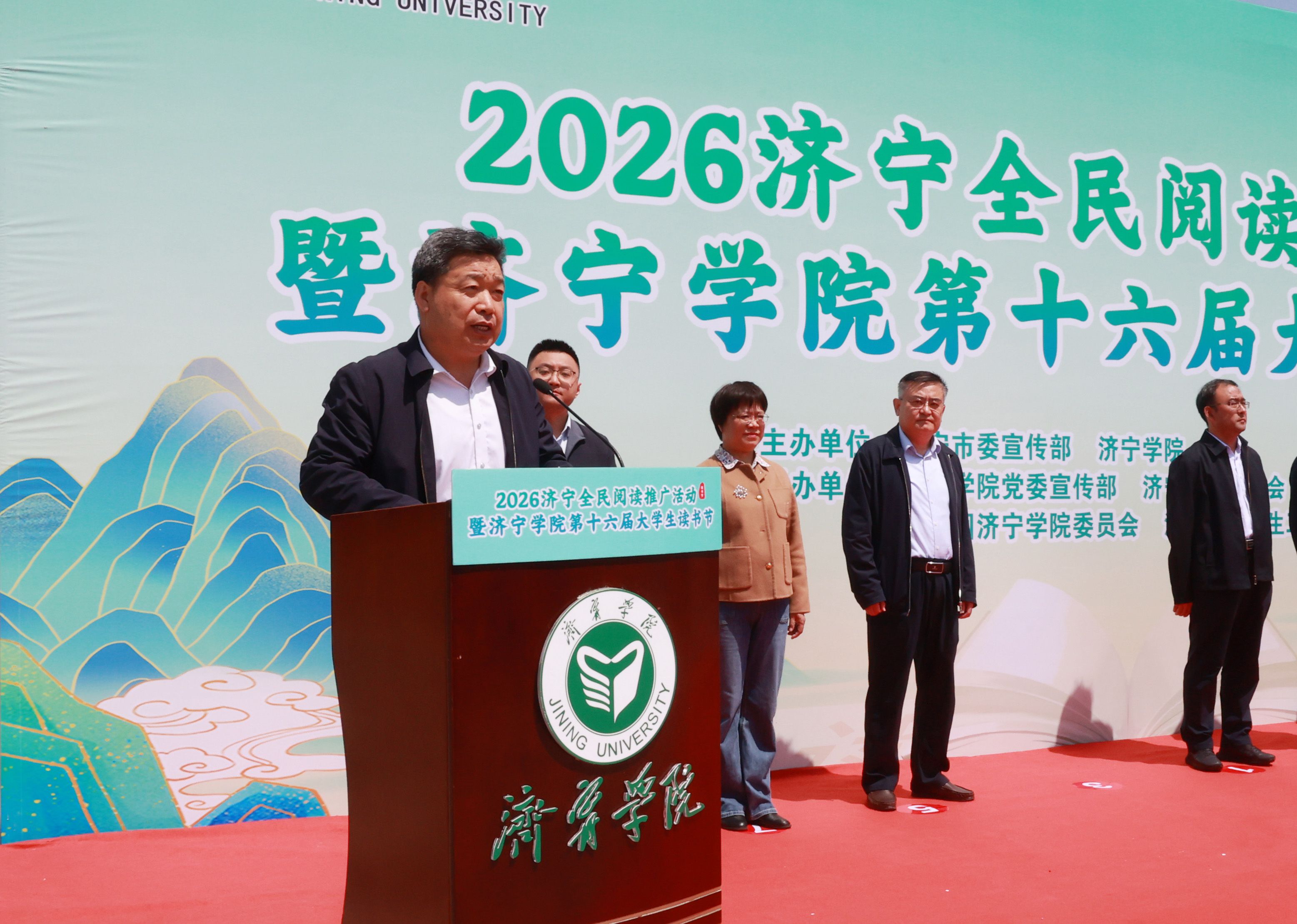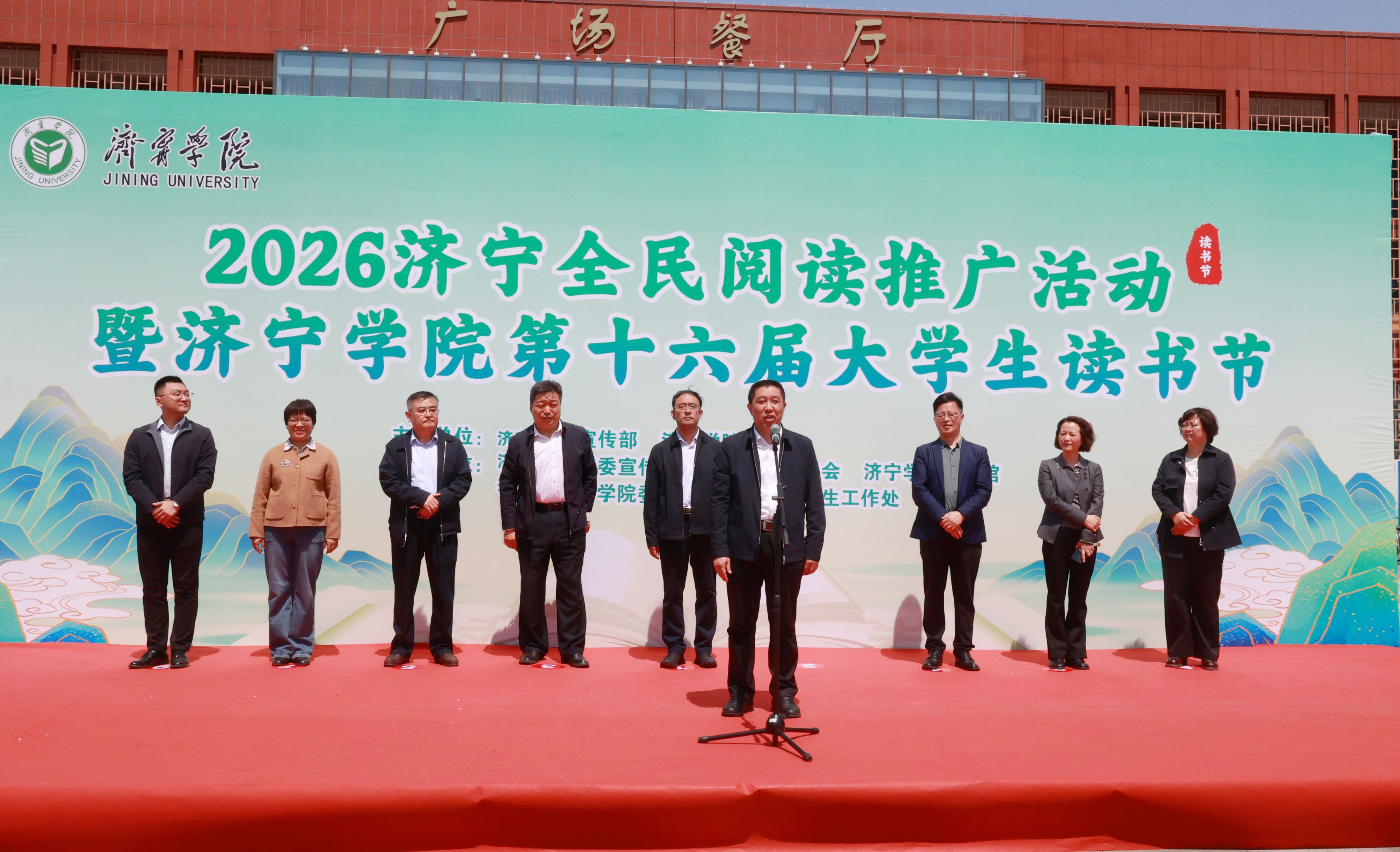 4月24日上午,由济宁市委宣传部、济宁学院联合主办的2026济宁全民阅读推广活动暨济宁学院第十六届大学生读书节拉开帷幕。济宁市委宣传部副部长、市新闻办主任张永,济宁市读书协会会长郭玉应邀出席。学校党委书记仲红波,党委副书记、校长王清明,党委副书记丰家雷,党委委员、副校长尹春光出席开幕式。学生工作处、校团委、图书馆负责人以及各二级学院党委书记、副书记、团委书记、师生代表参加活动。学校党委委员、宣传部(教师工作部)部长刘克非主持开幕式。
