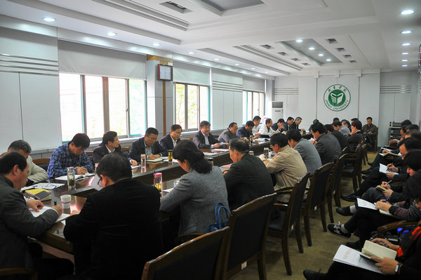 4月12日下午,学校党委理论学习中心组(扩大)在行政楼二楼会议室举行党的建设专题学习会。党委书记郁章玉主持会议并讲话,党委委员、副院长朱松涛、张德芳,党委委员、纪委书记许记中出席会议。学校党总支(党委)、直属党支部书记及附属单位党总支(党委)、党支部书记参加了学习会。
