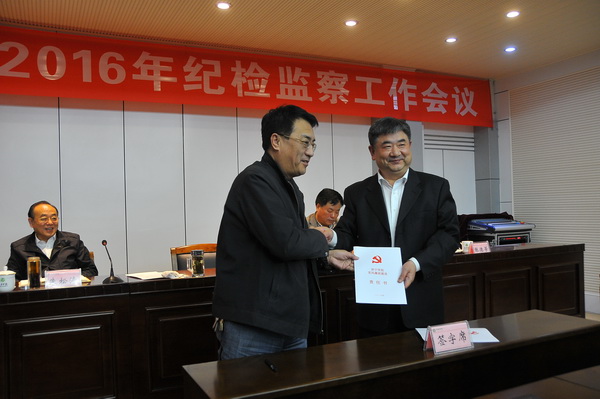 会上,郁章玉代表学校党委,与部门和单位负责人代表签订了2016年党风廉政建设责任书。(纪委)