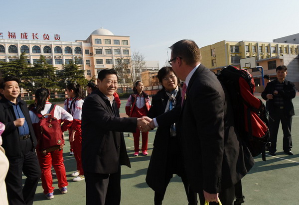 3月26—30日,加拿大埃德蒙顿奥华中学师生访问团一行26人在谢绵绵团长带领下来济宁学院附属中学进行友好交流访问。济宁学院副院长朱松涛、济宁市教育局副局长刘加庚应邀参加欢迎仪式。