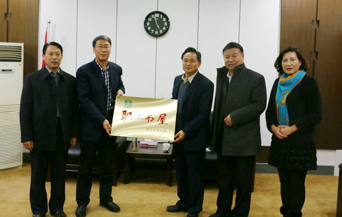 1月5日下午,济宁市总工会党组副书记、副主席赵胜和党组成员、副主席王厚忠在宣教部部长常伟刚的陪同下来我校检查指导工会工作并举行济宁市“职工书屋”示范点授牌仪式。校党委副书记、院长吕灵昌,党委委员、副院长张德芳会见了市总工会的领导,校工会负责同志汇报工作。