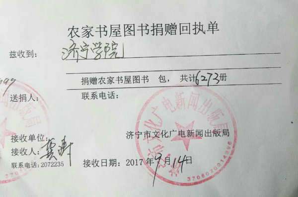 9月14日,党委宣传部、工会分别在曲阜校区和济宁教师生活区设立了捐书点。各单位部门积极发动、组织得力,广大教职工热心参与、踊跃义捐,全校共捐书6273册,其中政经类图书872册、科技类图书378册、法律类图书178册、生活类图书564册、文化类图书2327册、少儿类图书类1954册,捐书均内容健康向上,能增长知识、陶冶情操。本次活动中表现突出、 捐书较多的单位有初等教育学院(捐书1106册)、学前教育学院(捐书844册)、教育系(捐书840册)等。教育系宋汝国老师个人捐书202册。我校教职工为农家书屋献爱心的行动得到济宁市领导的充分肯定。目前,我校教师捐书已全部配送到济宁市基层农村的“农家书屋”。