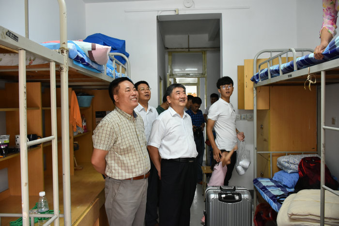 新生报到期间,校党委书记郁章玉,党委副书记、院长吕灵昌,党委副书记马恩,党委委员、副院长朱松涛到迎新现场看望前来报到的家长和学生,对新生的到来表示热烈欢迎,并勉励新生们珍惜大学时光,不断进取。学校领导每到一处都向参加迎新工作的师生详细了解迎新工作的进展情况,并给予指导。校领导郁章玉、吕灵昌、马恩还专门到学生宿舍看望新入住的同学们及其送学的父母或亲属,同他们嘘寒问暖,聊聊家常,当新生家长们看到学校领导如此平易近人、爱护关心学生,心里都感到无比欣慰。