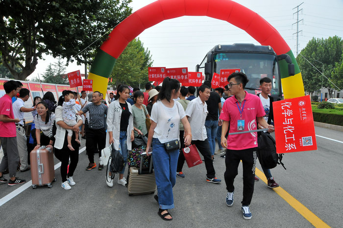尽管今年新生多是乘私家车前来报到,但学校依然延续了以往派通勤车去兖州火车站及曲阜高铁站、火车站、汽车站接站惯例,为新生提供温馨周到的服务。亲切的微笑,无微不至的服务,有条不紊的工作秩序,赢得了学生及其家长的赞誉。前来报到的新生和家长纷纷表示,学校的迎新工作准备充分,服务热情细心周到,让他们感受到了学校的温暖和体贴,相信在这样一个和谐、整洁、美丽、清新的校园,学生一定可以更加自信地带着新梦想开启新征程,健康快乐的成长成才,谱写出精彩满意的人生新篇章。17日,迎新工作仍将继续,大家热情依然高涨,迎新工作人员及志愿者仍会坚守岗位,喜迎下一位新生的到来。祝福圣地学府新学期更有新气象、新征程成就新梦想。