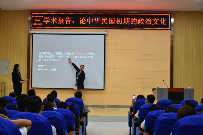4月21日上午,第八届世界儒学大会与会学者、美国俄亥俄大学教授贺祥来我校在理科教学楼D101智慧教室作了题为《论中华民国初期的政治文化》的专题报告。报告会由文化传播系教授周新芳主持。我校文化传播系部分师生聆听了报告。