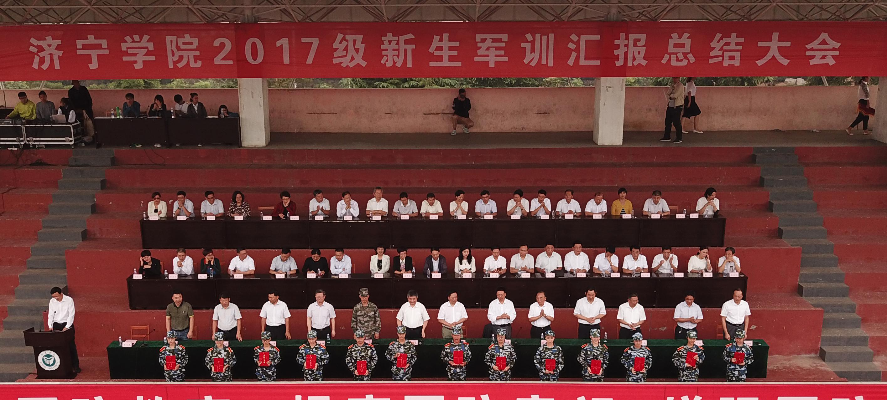 马恩作总结讲话。他首先代表济宁学院向莅临现场指导的71602部队领导、担任军训任务的承训官兵表示衷心的感谢和崇高的敬意,向圆满完成军训任务、取得优异成绩的2017级新同学,向获得表彰的6个先进营、23个优胜连、286名优秀学员,并对今天精彩、圆满的阅兵式展演表示热烈的祝贺。他指出,在今年的军训中,承担本次军训任务的68名教官对新生军训工作投入了极大的热情,克服了训练时间短、任务重等各种困难,发扬不怕苦、不怕累的优良作风,精心施教,悉心指导,严格要求,率先垂范,确保了军训工作圆满成功。他强调,我们的国防是全民的国防,对大学新生进行军训是全民国防的重要体现。在团结、紧张、严肃、活泼的军训生活中,同学们经历了坚强的磨练和艰苦的考验,凭借顽强的毅力,在部队教官的帮助下,圆满完成了军训任务,向学校交上了入学第一课的合格答卷。军训汇演中,各方队步伐整齐、动作规范、斗志昂扬,充分表现了当代青年人挑战自我、超越自我的精神和积极进取、奋发向上的精神风貌。通过军训,同学们增强了荣誉感,加强了纪律性,强化了集体主义精神,提高了集体凝聚力和战斗力;掌握了基本的军事知识和技能,了解了有关的国防科技知识,增强了国防观念和国防安全意识。他希望同学们珍惜军训生活,珍藏军训收获,发扬吃苦精神,学会面对困难,敢于迎接挑战,做一个理想远大、勇于创新、胸怀宽广、知行统一、笃学力行、德才兼备、全面发展的人,为济宁学院更好更快地发展贡献自己的光和热!