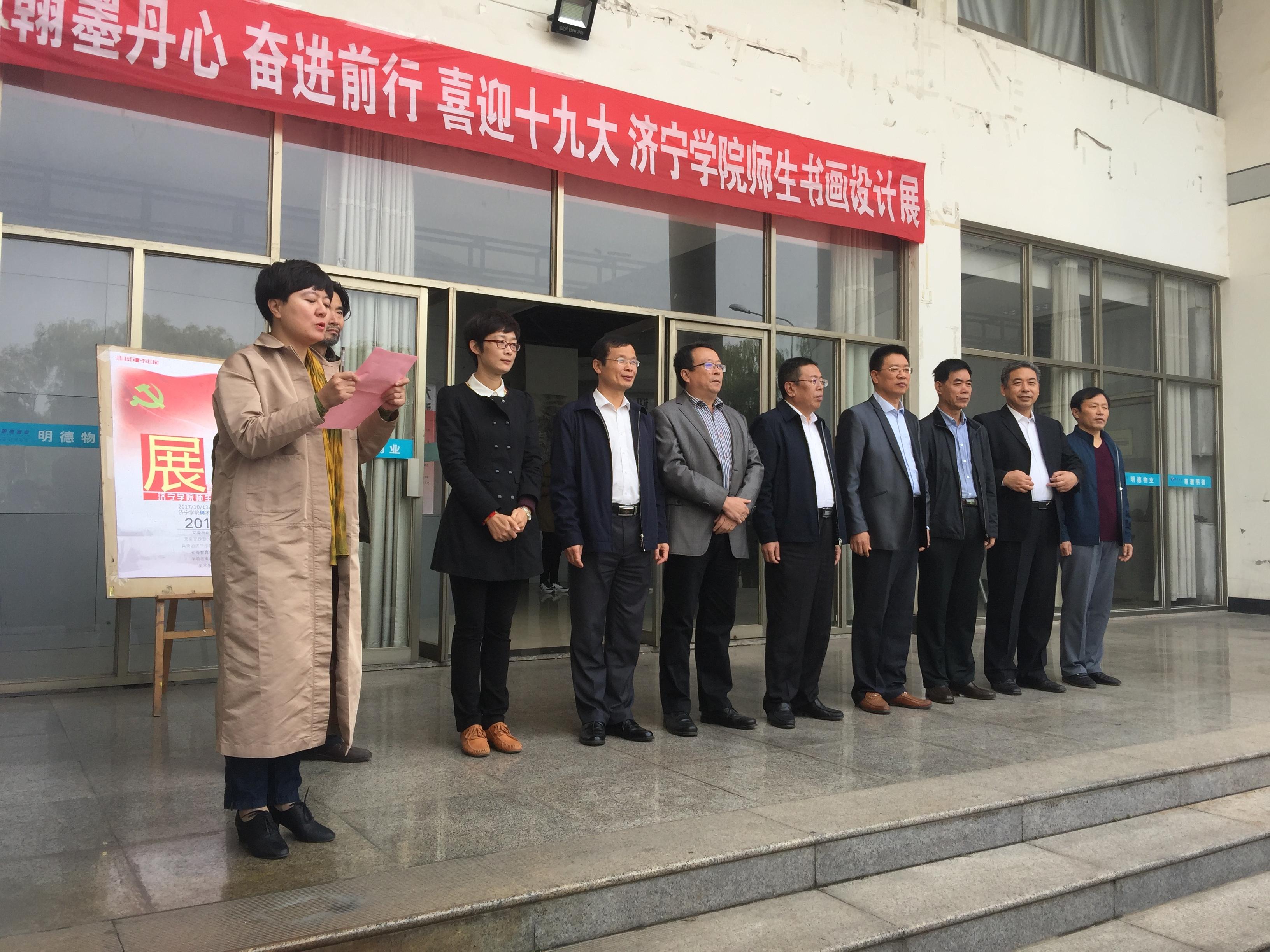 为迎接中国共产党第十九次全国代表大会的隆重召开,展现我校师生迎接十九大的强烈使命和喜悦心情,10月13日,翰墨丹心 奋进前行——济宁学院喜迎十九大师生书画设计展在美术系展厅开幕。校党委副书记马恩出席并致开幕辞,党委组织部、党委宣传部(统战部)、团委、初等教育学院、学前教育学院、美术系负责同志及本次展览展出作品的创作者和师生代表参加了开幕式。开幕式由美术系党总支书记杨晓青主持。