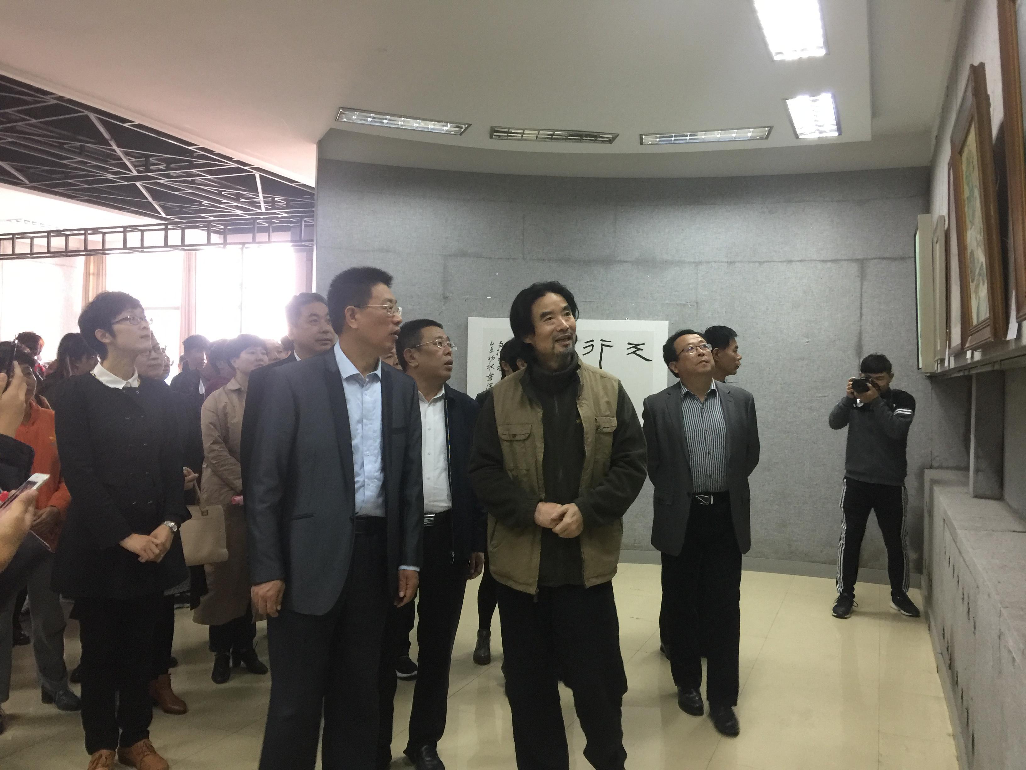 开幕式结束后,与会领导和师生一同参观了书画设计展,并就作品创作思路进行了交流。