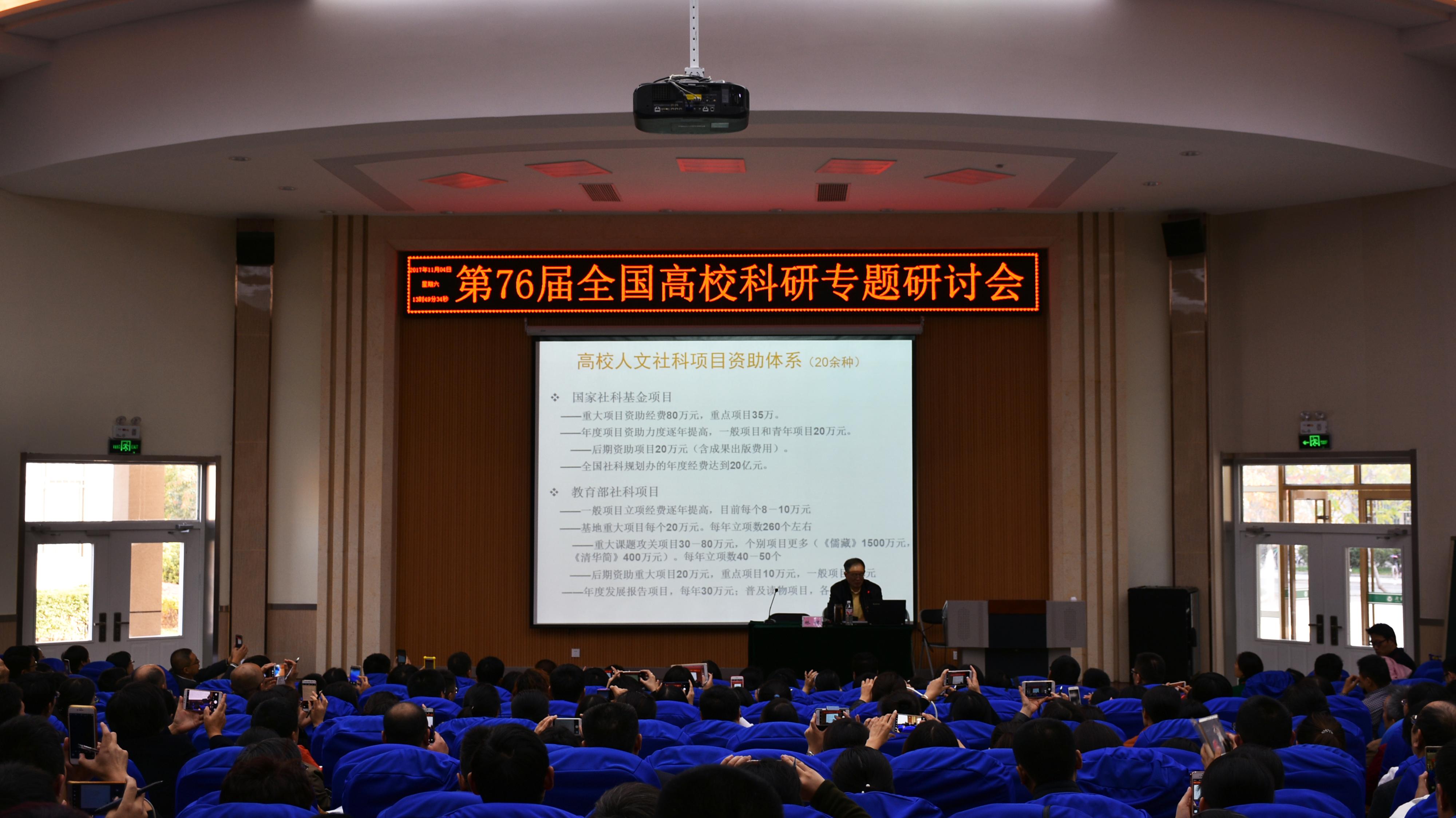 11月4日至5日,我校承办的第76届全国高校科研专题研讨会暨十九大精神学习和项目选题论证、论文撰写发表研讨会在智慧教室报告厅召开。副院长刘德胜出席开幕式并致欢迎辞,来自黑龙江、广西、江西、四川、甘肃等省(自治区)高校和我校580余名教师参加会议。研讨会开幕式由科研处副处长赵洁主持。