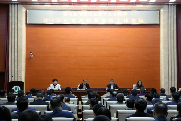 11月11日至13日,2017年山东高校辅导员工作论坛在我校举行。此次论坛以“围绕学生、关照学生、服务学生,提高育人能力”为主题,旨在深入贯彻落实十九大精神和全国全省高校思想政治工作会议精神,贯彻落实中央31号文件精神,践行立德树人根本任务,进一步推进高校辅导员队伍专业化职业化建设,提升大学生思想政治教育工作质量。山东省委高校工委副巡视员刘欣堂、济宁学院党委书记郁章玉出席论坛开幕式并讲话,济宁学院党委副书记马恩、山东省委高校工委宣教处副处长王莉、教育部高校辅导员培训和研修基地(山东大学)办公室主任夏晓虹等出席论坛。全省高校学生工作部门负责人、优秀论文作者及济宁学院辅导员共计200余人参加了此次论坛。