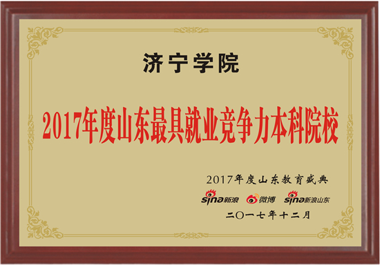 12月14日,2017年度山东教育盛典荣耀榜单盛大发布,济宁学院喜获“2017年度山东最具就业竞争力本科院校”殊荣。